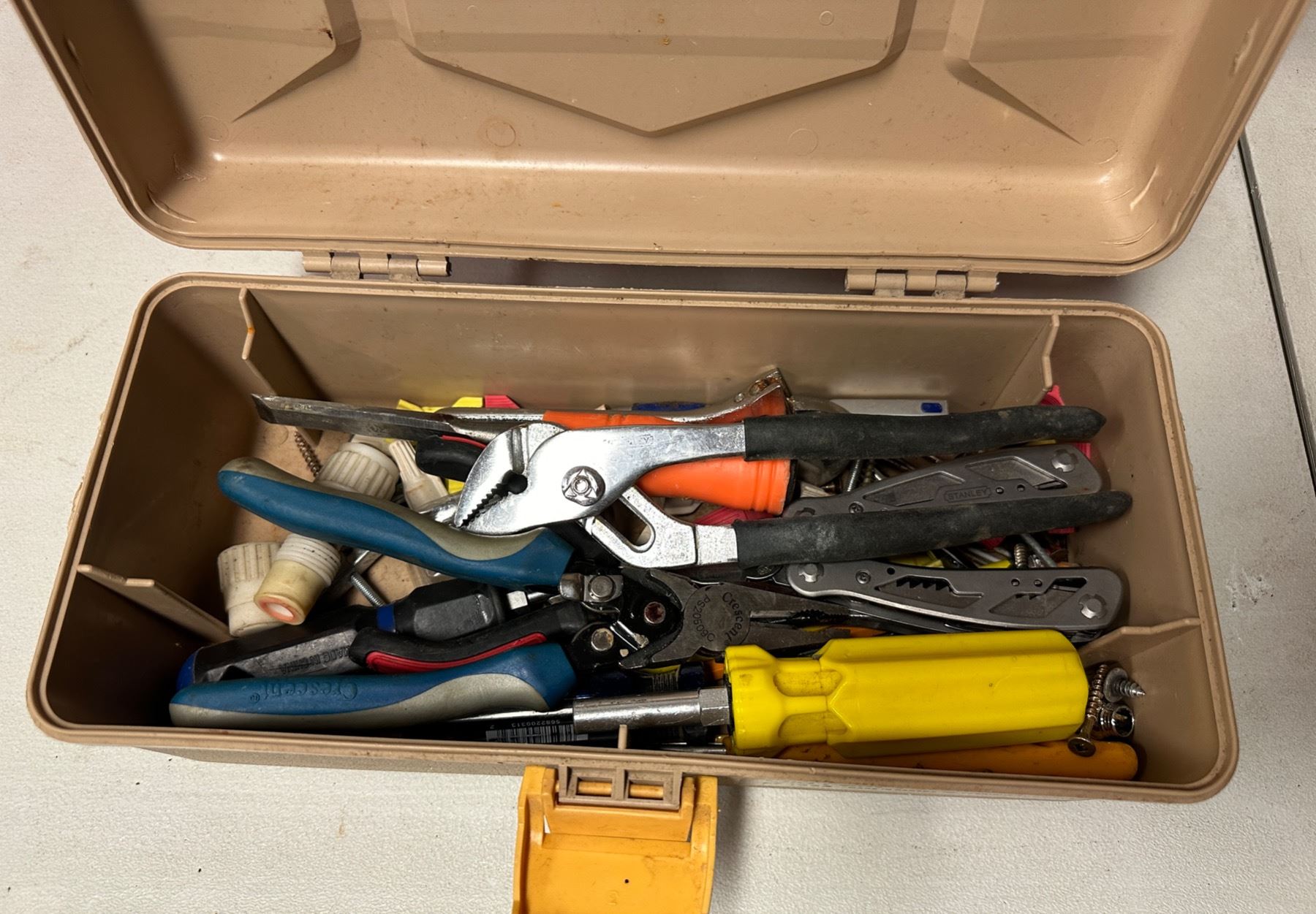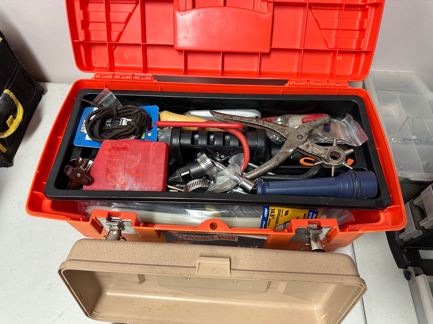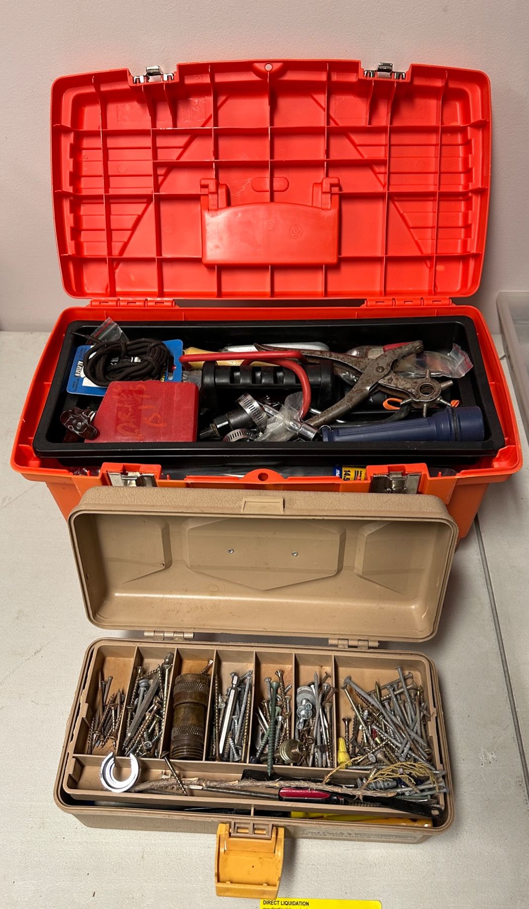 2 toolboxes full of assorted tools & misc - includes Homer Box / screwdrivers / flashlight / drill bits etc