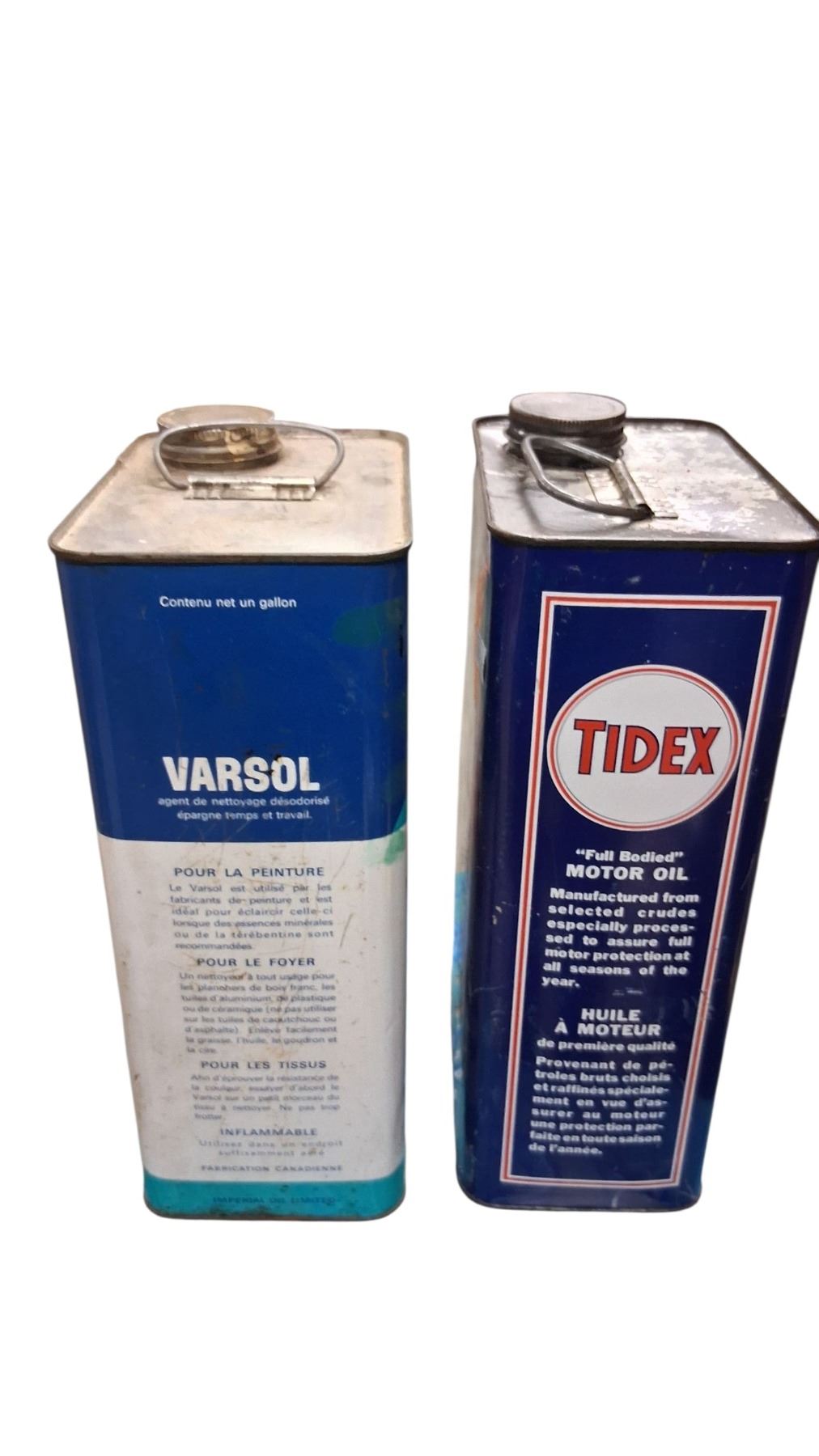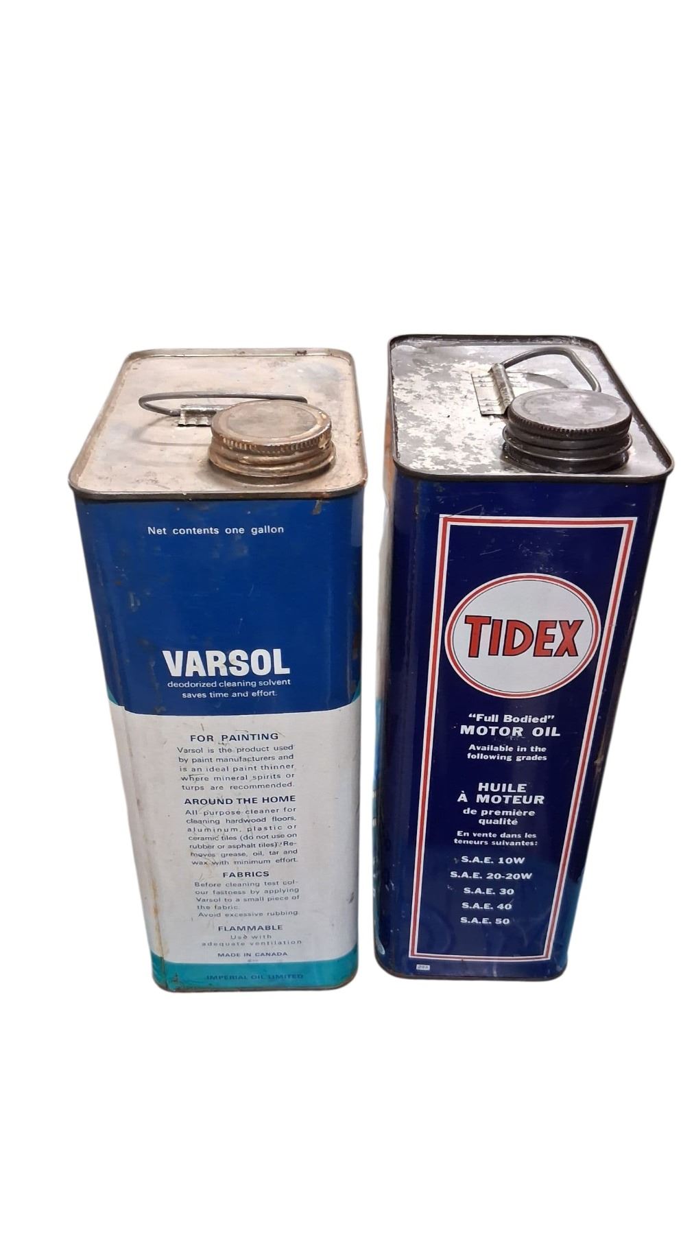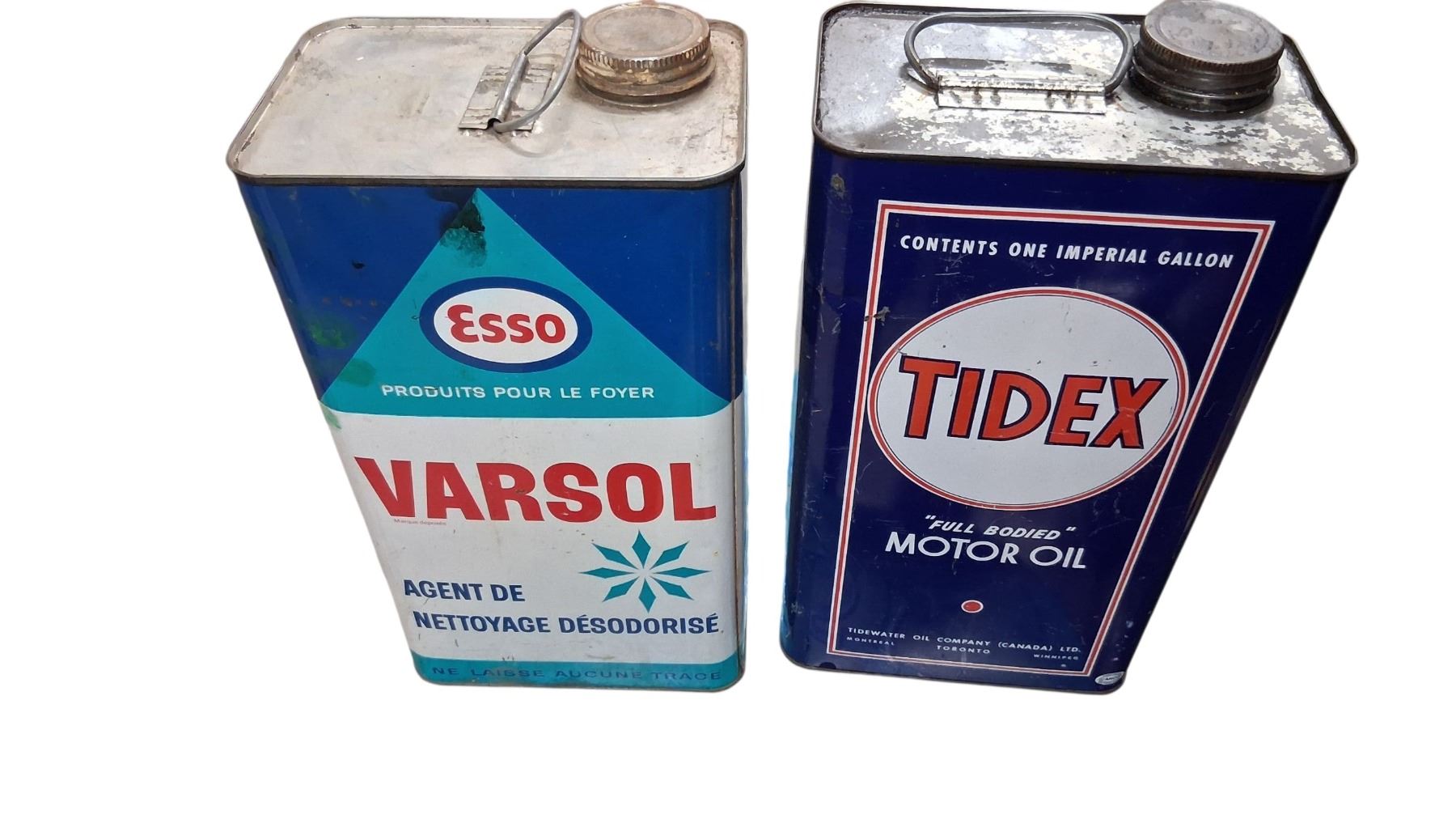 2 vintage 1 gallon oil tins, Tidex & Esso
