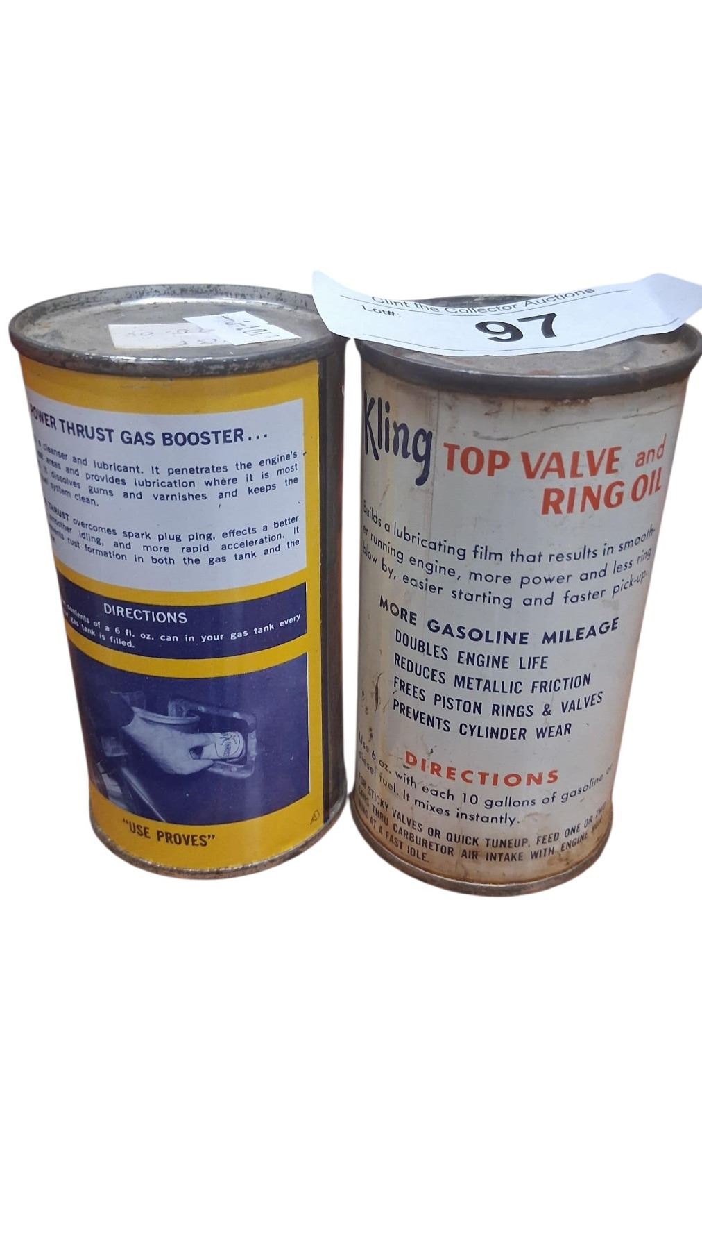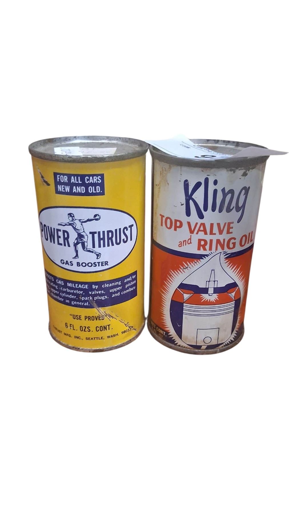 2 vintage 6 oz tins, 1 Kling, 1 Power Thrust