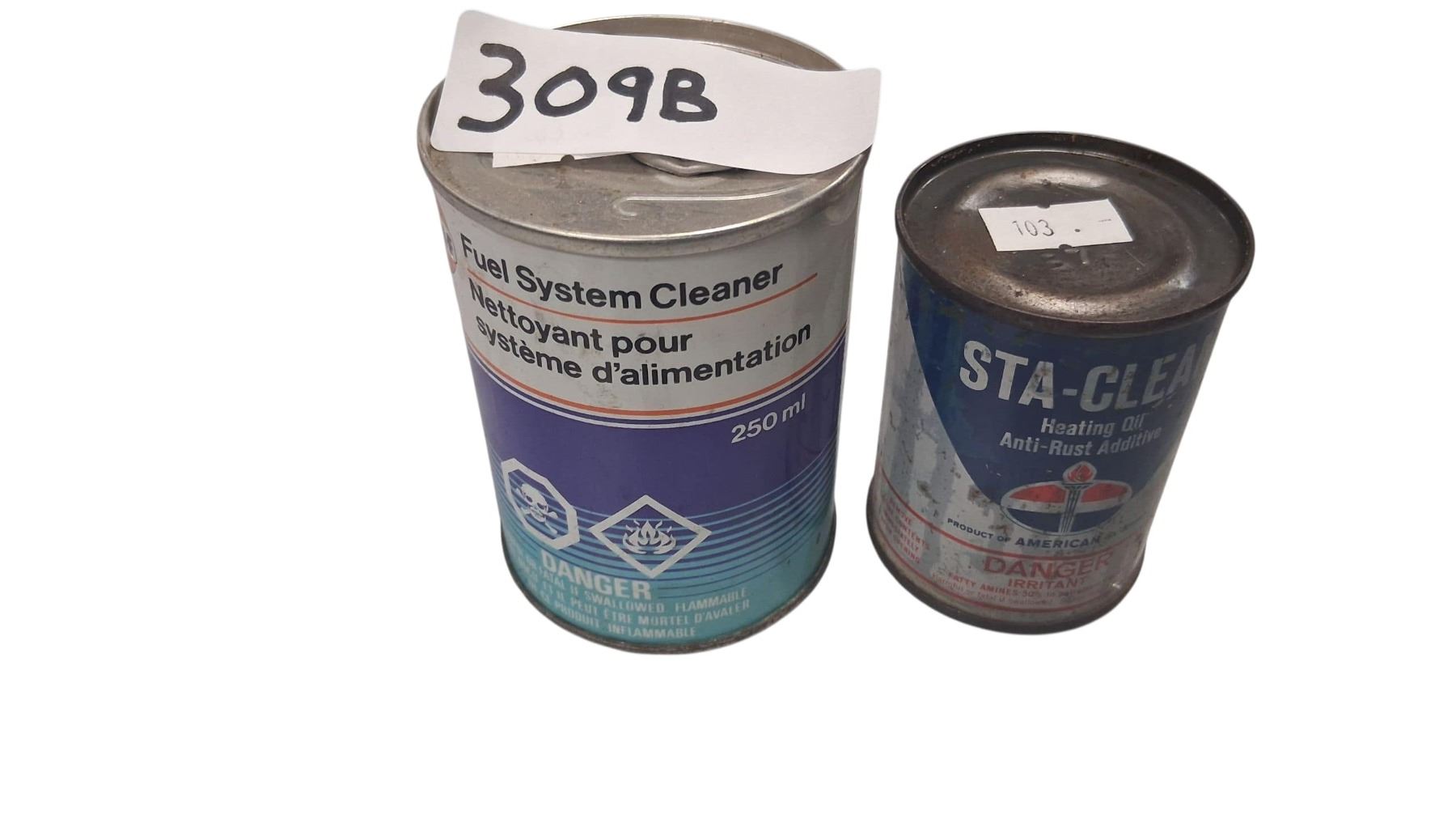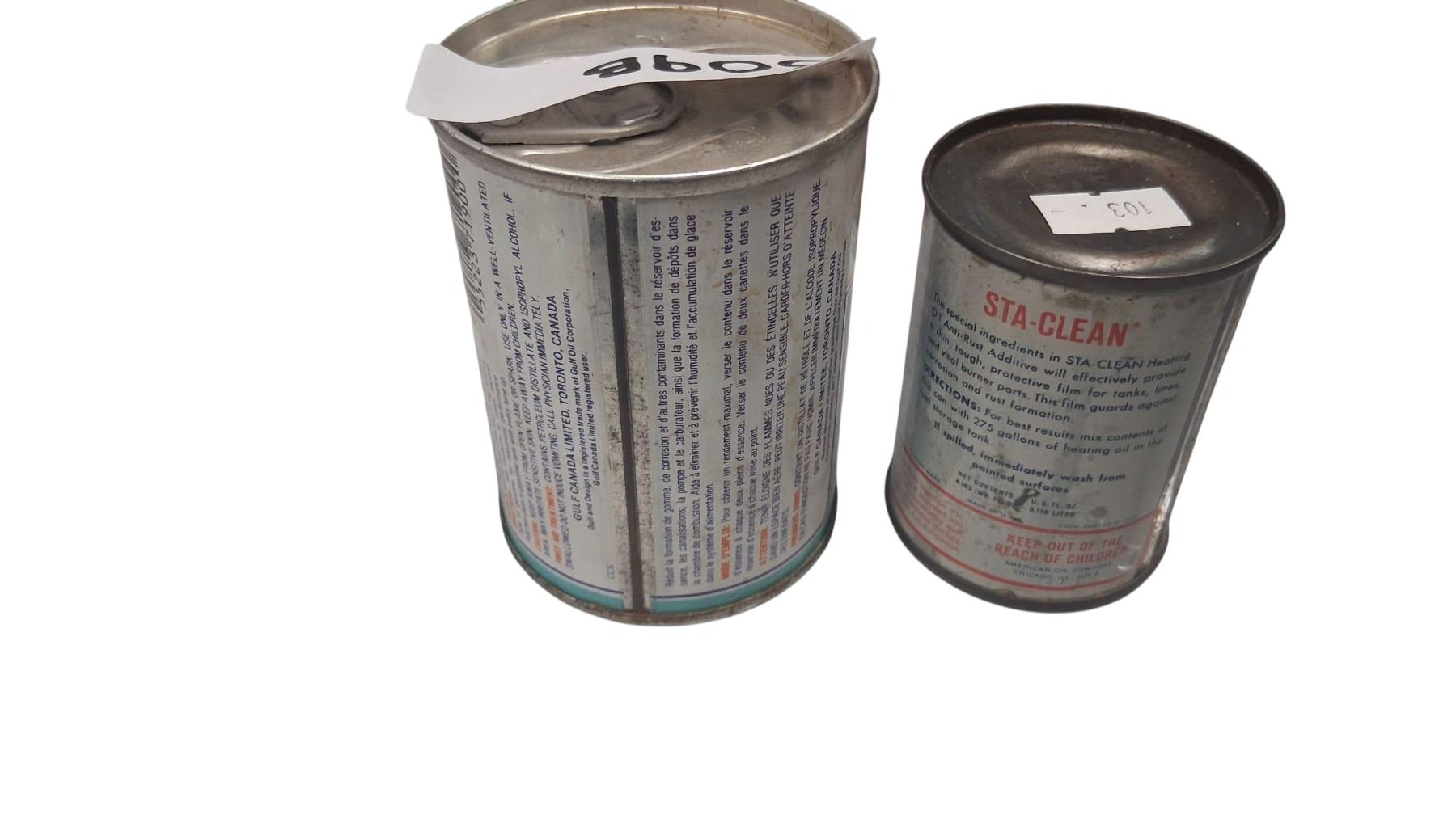 2 vintage oil tins, Gulf 250ml & Sta-Clean