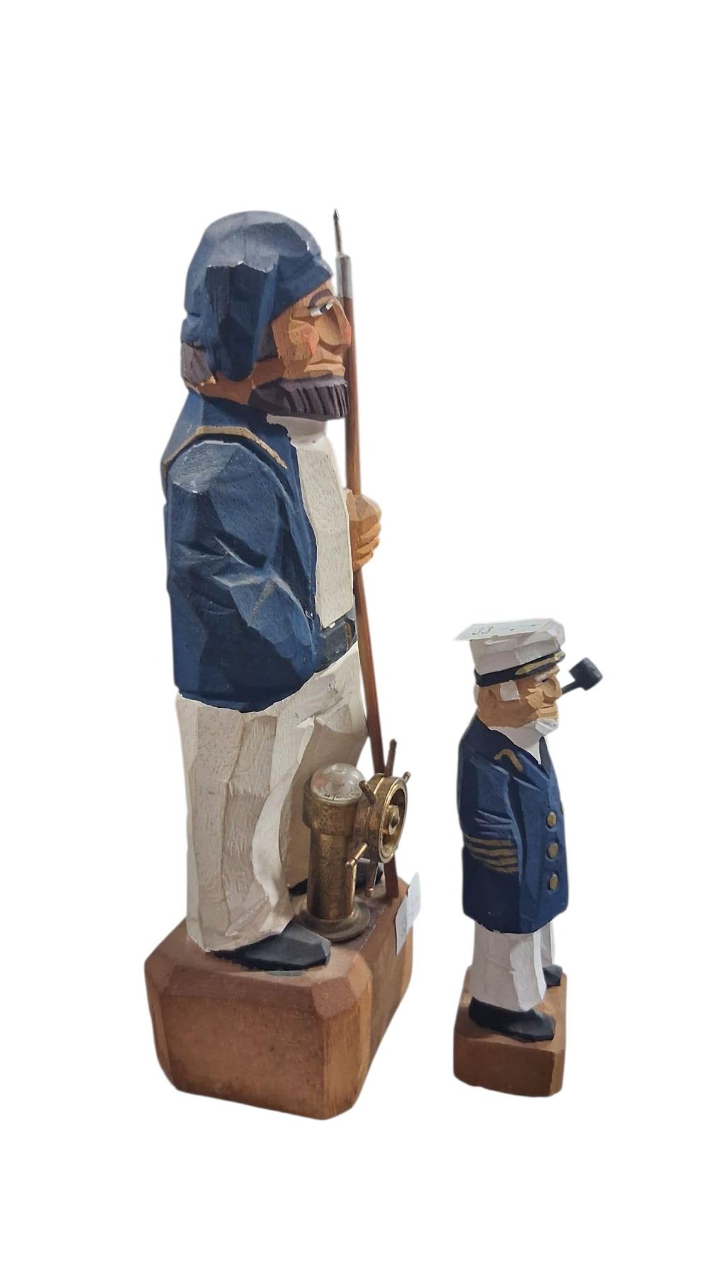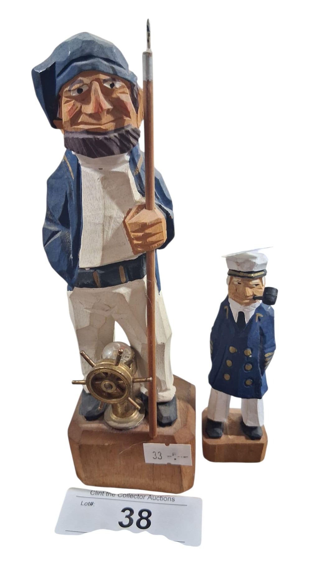 2 wooden ship's captain figures (one with working compass) 8" & 4"