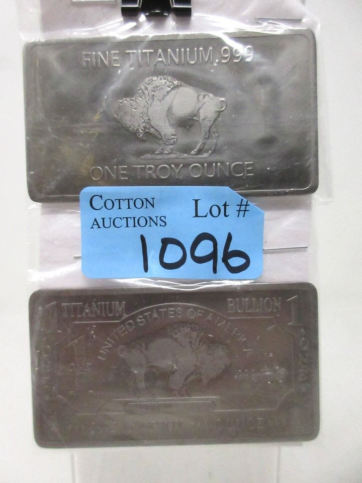 2 x 1 Oz. .999 Fine Titanium Buffalo Bars