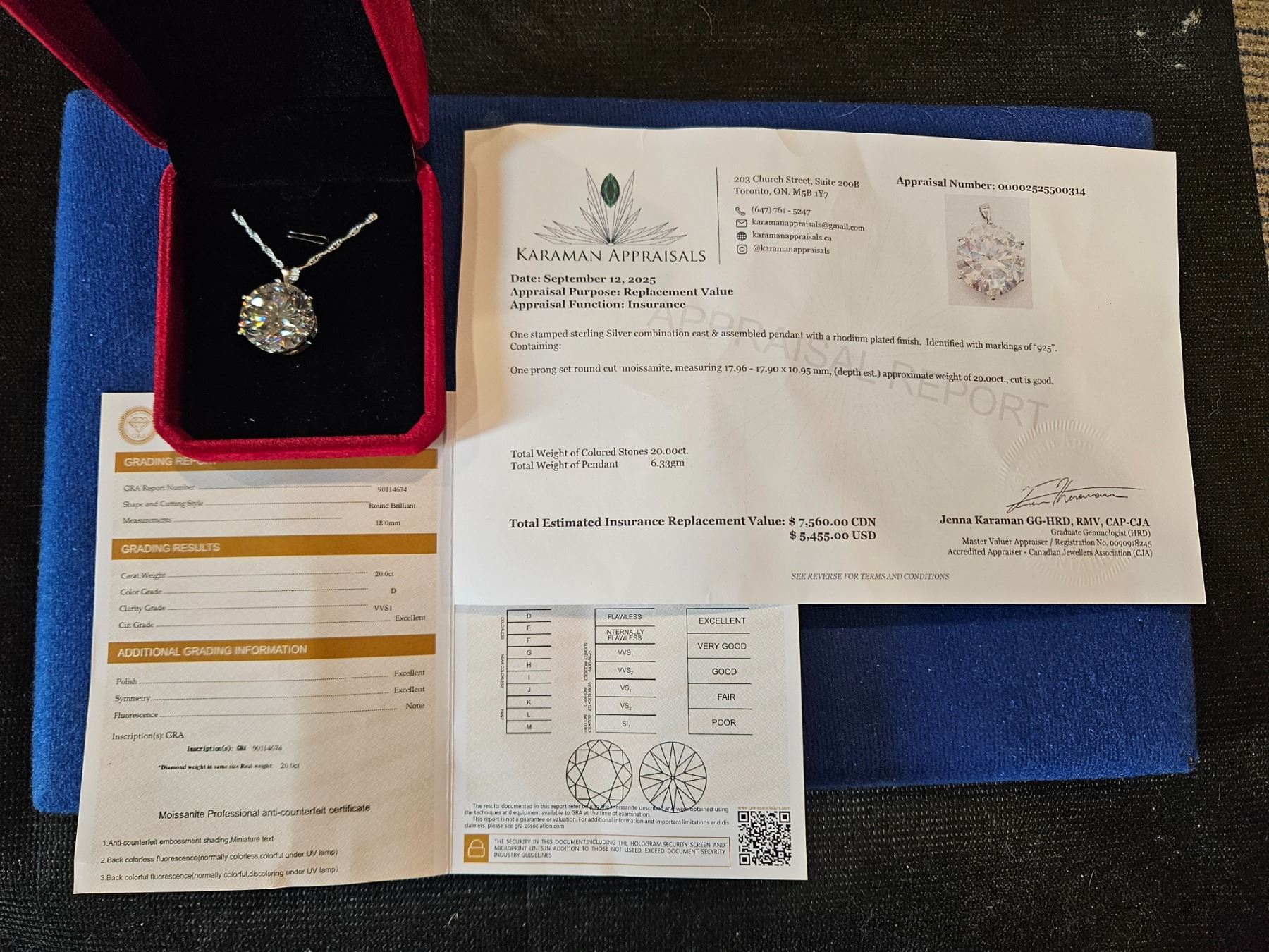 20.00 CT GRA CERTIFIED ROUND BRILLIANT CUT MOISSANITE STONE VVS D COLOR SET IN 925 SILVER PENDANT RETAIL VALUE $7,560.00