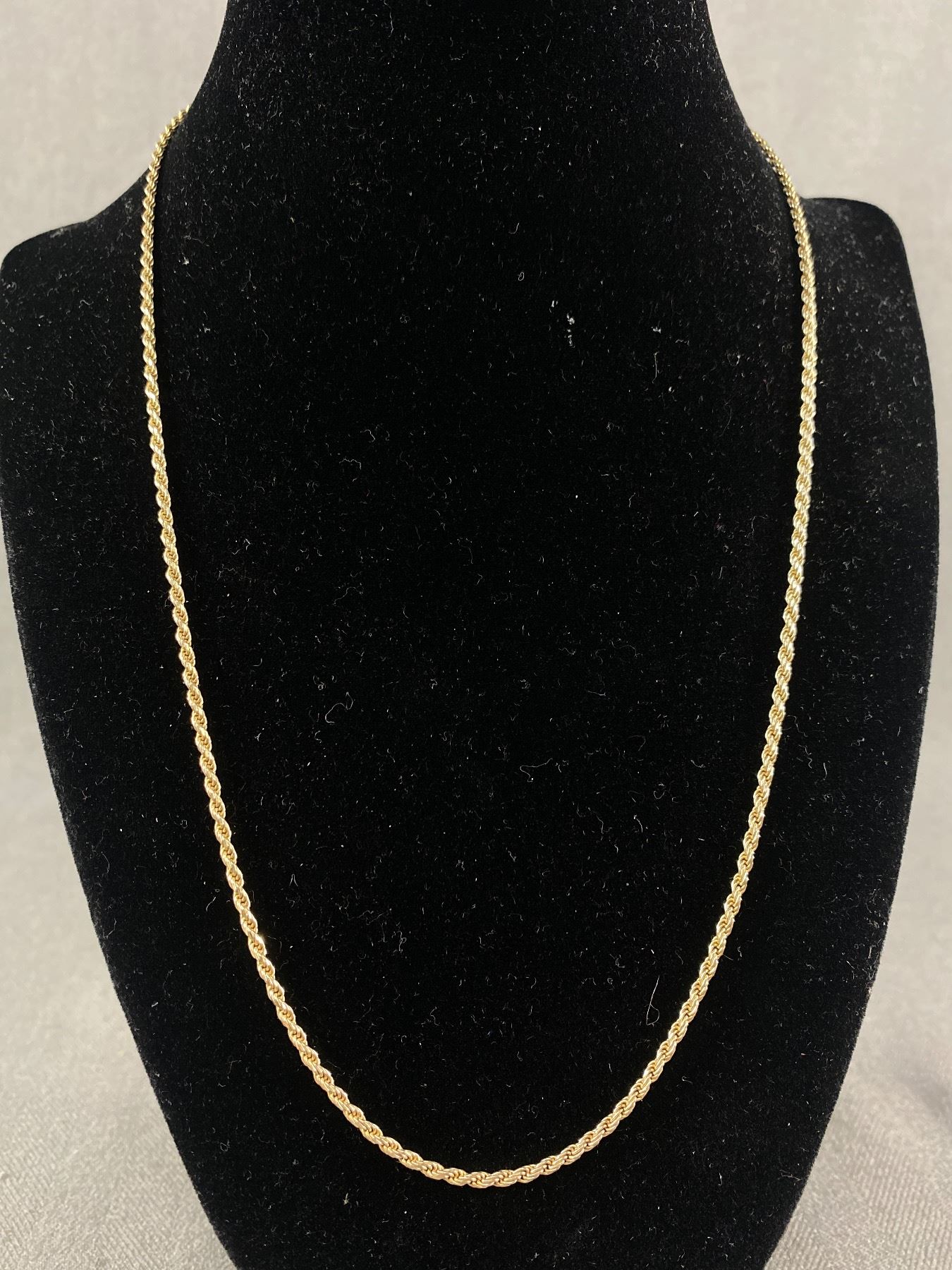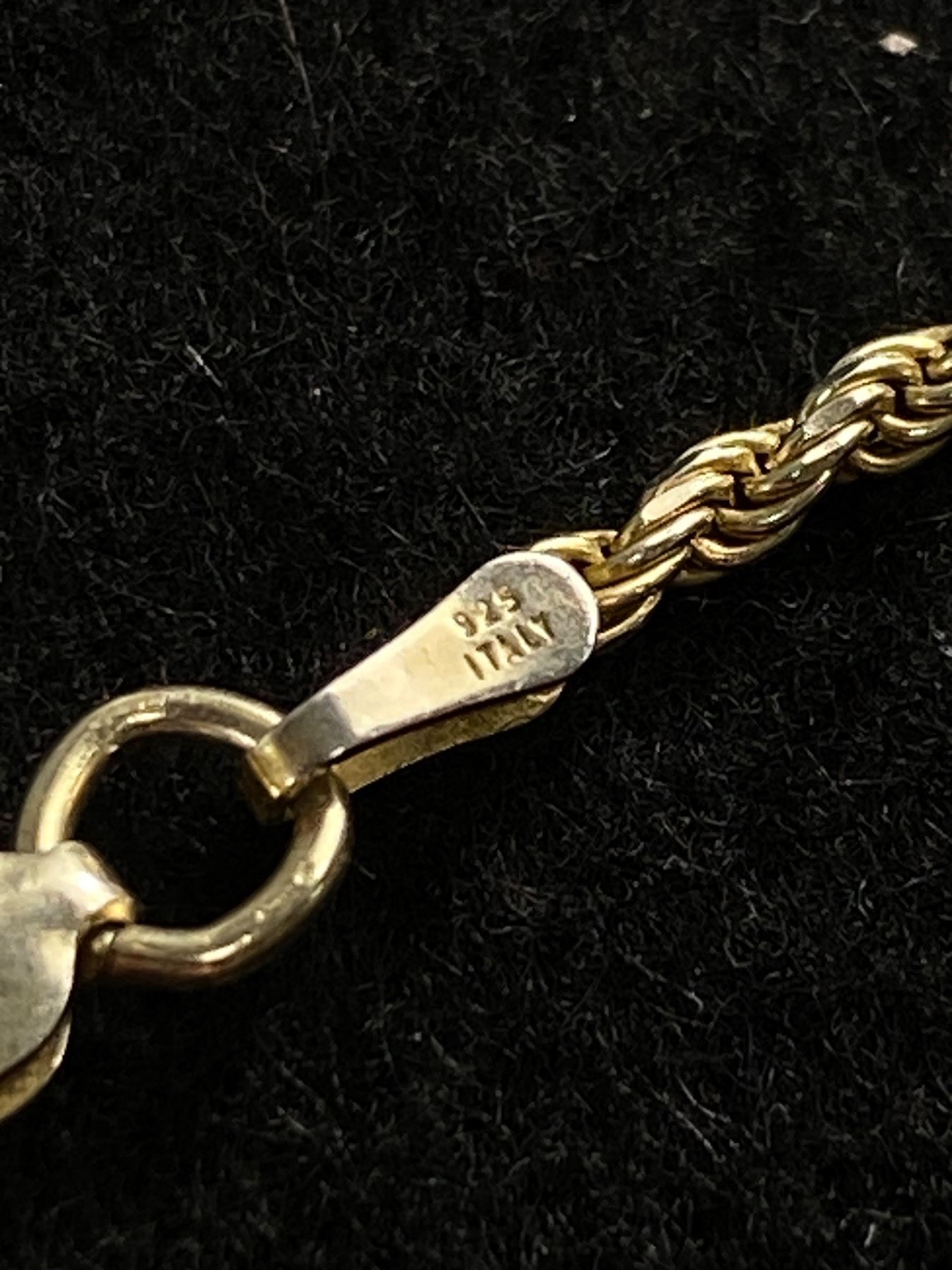 20" .925 Sterling Silver Rope Chain Gold Finish - Diamond Cut - 6.4 Grams - Marked & Tested