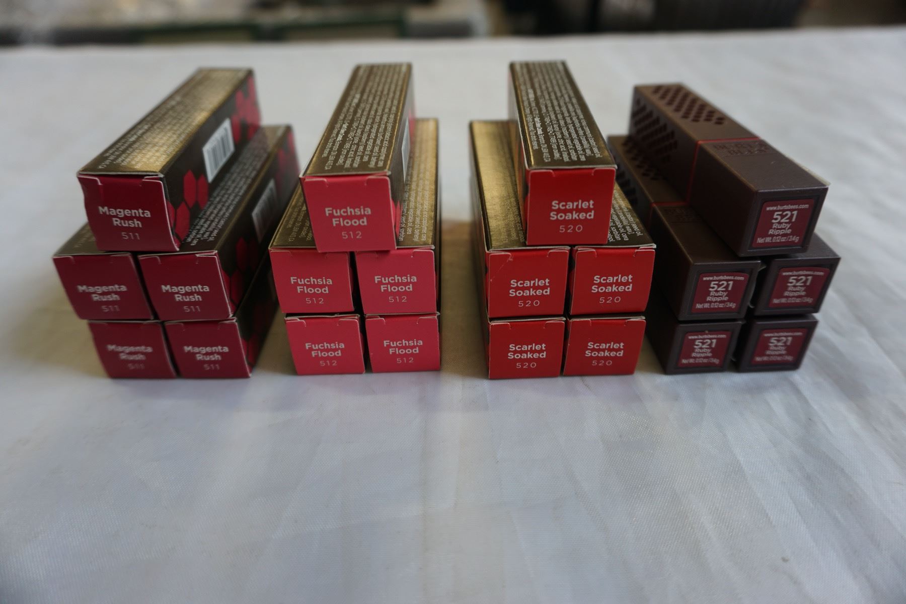 20 BRAND NEW BURTS BEES 100% NATURAL LIPSTICK, RETAIL $219.80 - 5 OF EACH COLOUR RUBY RIPPLE, MAGENTA RUSH, FUCHSIA FLOOD, SCARLET SOAKED