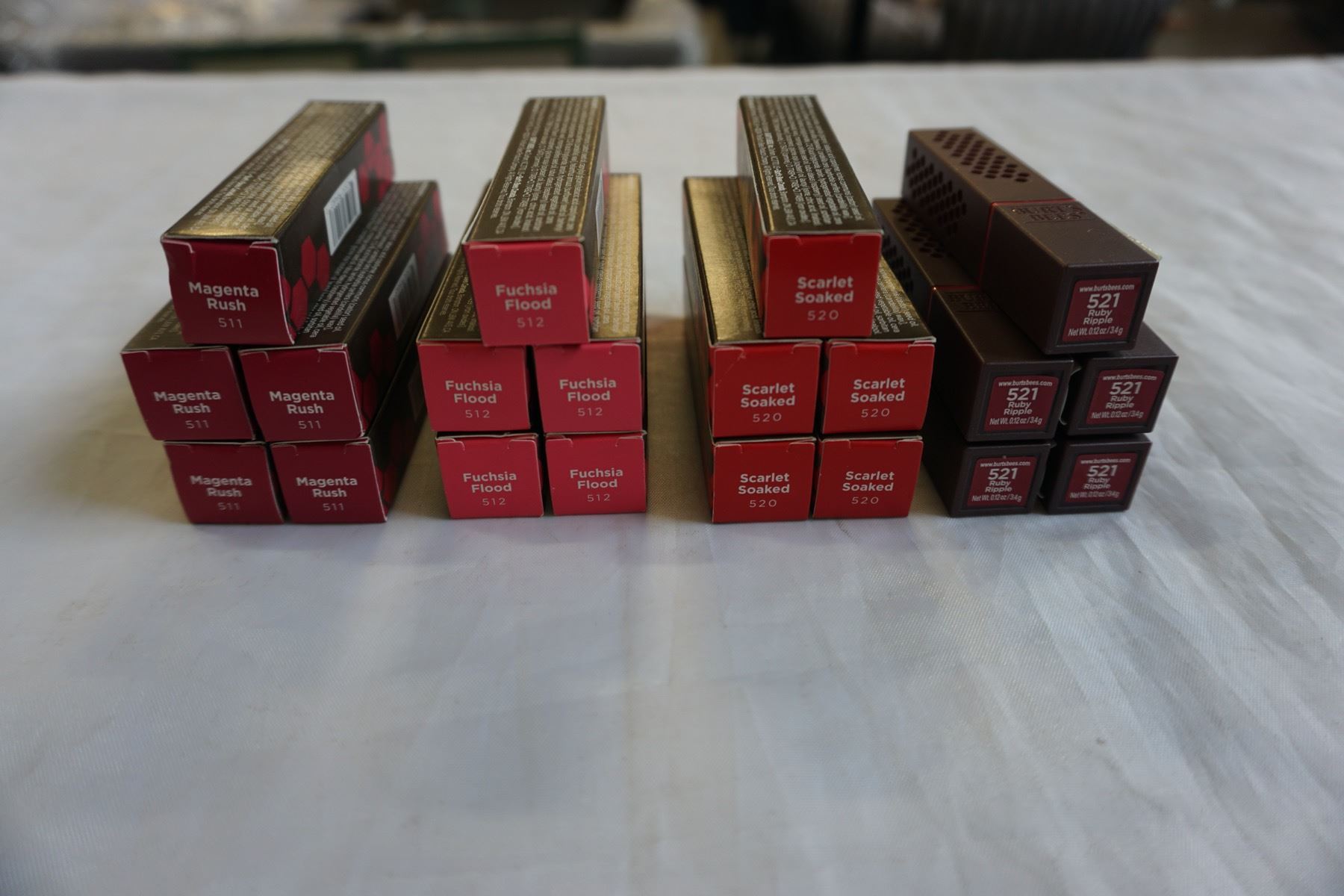20 BRAND NEW BURTS BEES 100% NATURAL LIPSTICK, RETAIL $219.80 - 5 OF EACH COLOUR RUBY RIPPLE, MAGENT