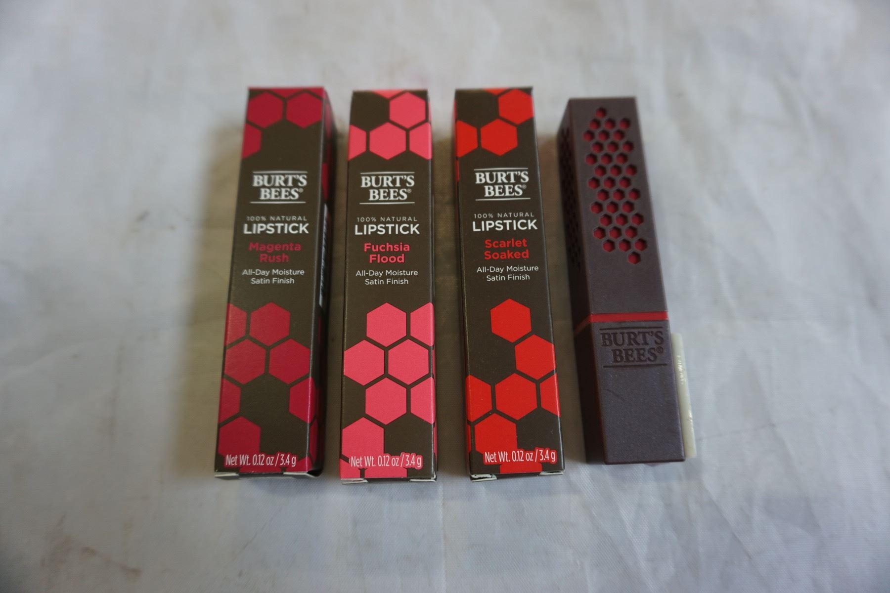 20 BRAND NEW BURTS BEES 100% NATURAL LIPSTICK, RETAIL $219.80 - 5 OF EACH COLOUR RUBY RIPPLE, MAGENTA RUSH, FUCHSIA FLOOD, SCARLET SOAKED