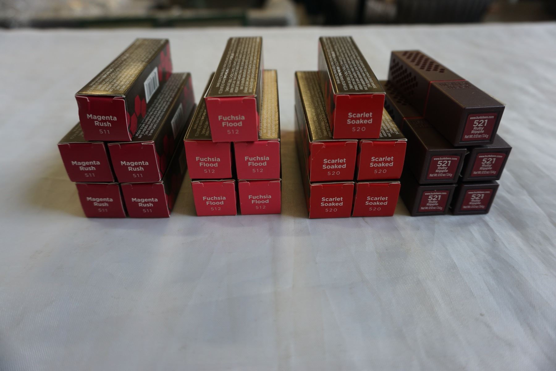 20 BRAND NEW BURTS BEES 100% NATURAL LIPSTICK, RETAIL $219.80 - 5 OF EACH COLOUR RUBY RIPPLE, MAGENTA RUSH, FUCHSIA FLOOD, SCARLET SOAKED