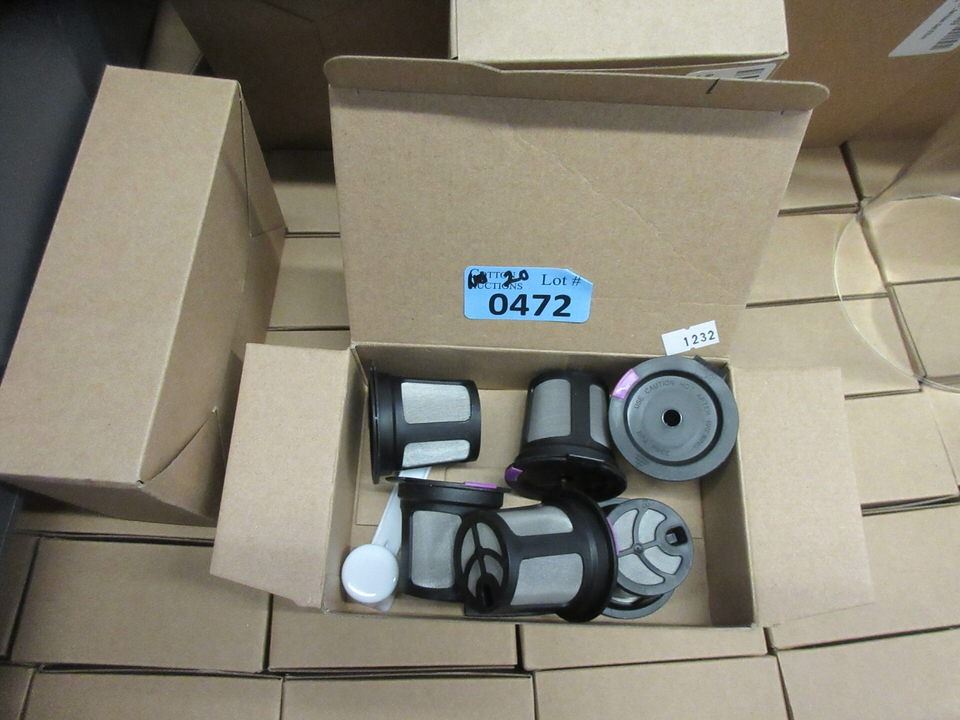 Also filters on the bottom. Includes cleaning brush and coffee scoop.