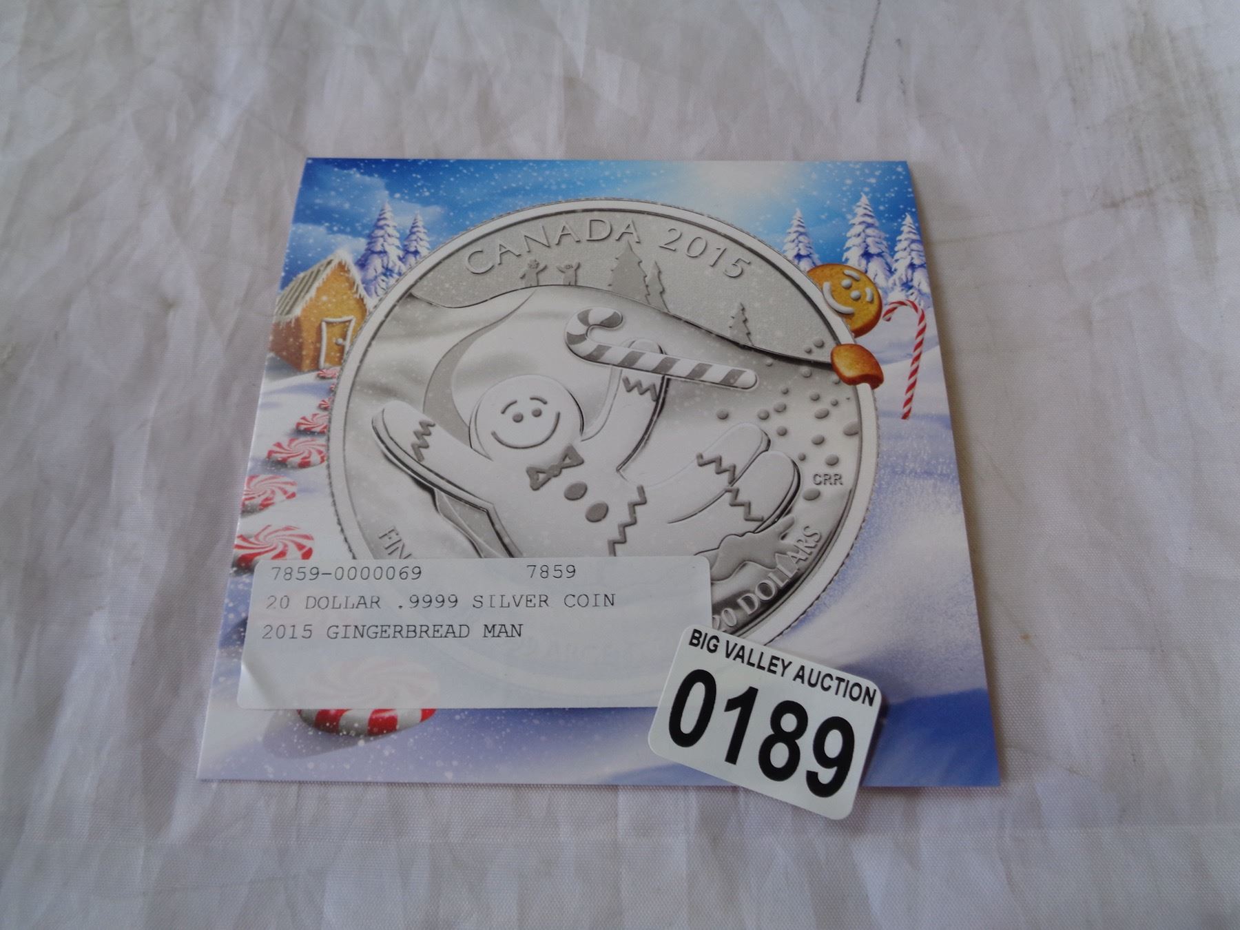 20 DOLLAR .9999 SILVER COIN 2015 GINGERBREAD MAN