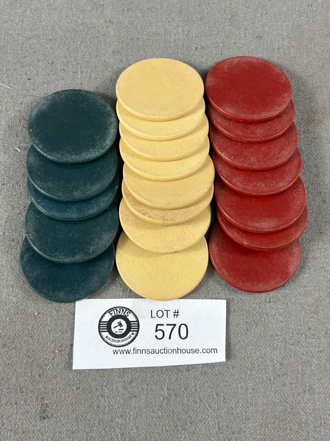 20 Multi - Colour 1930's Bakelite Poker Chips