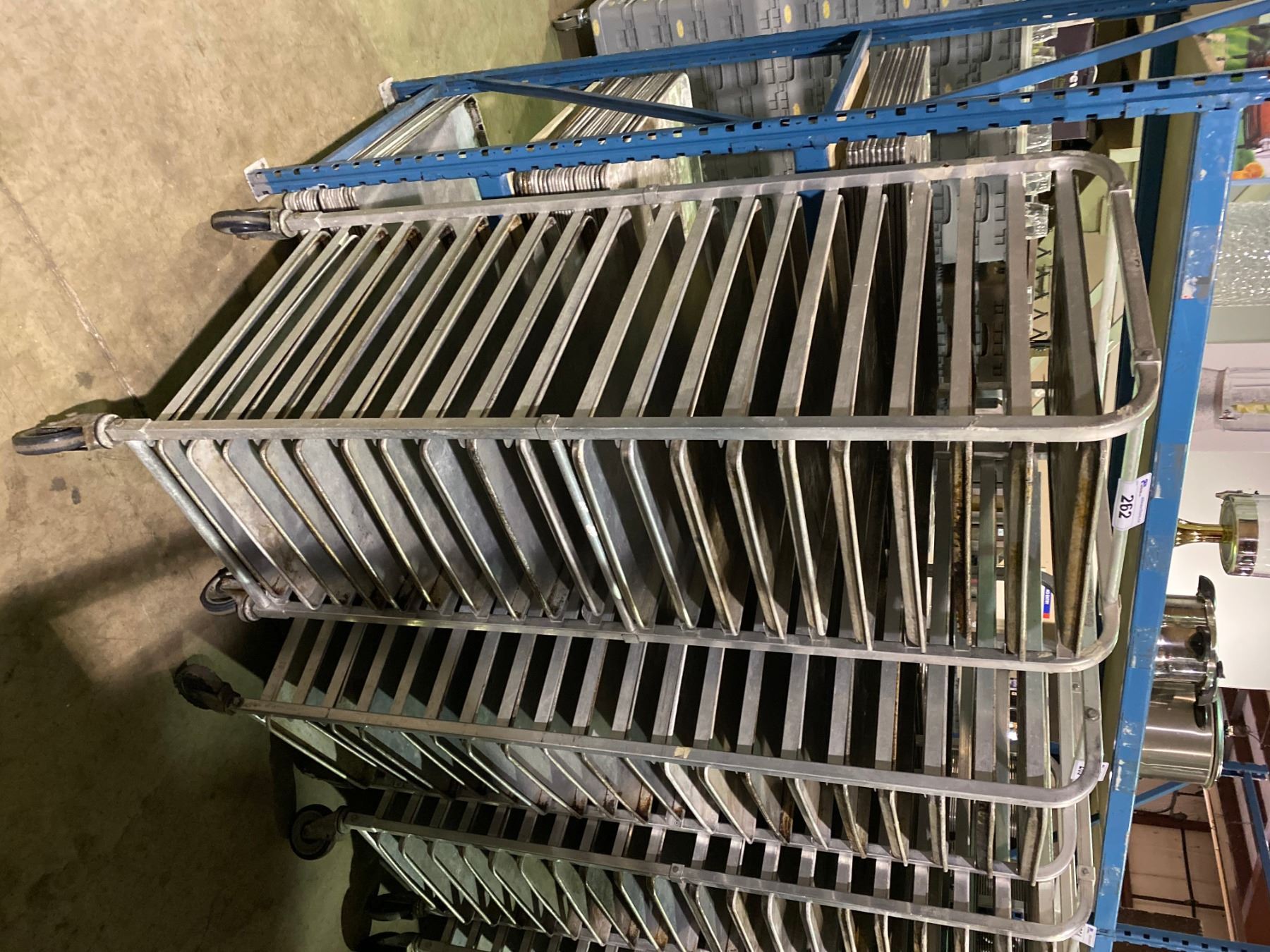 20 SECTION ALUMINUM MOBILE BAKERS RACK WITH 20 BAKING SHEETS