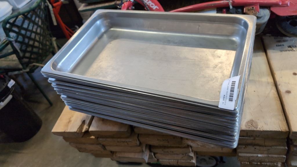 20 STAINLESS STEEL INSERT TRAYS, 20" X 12"