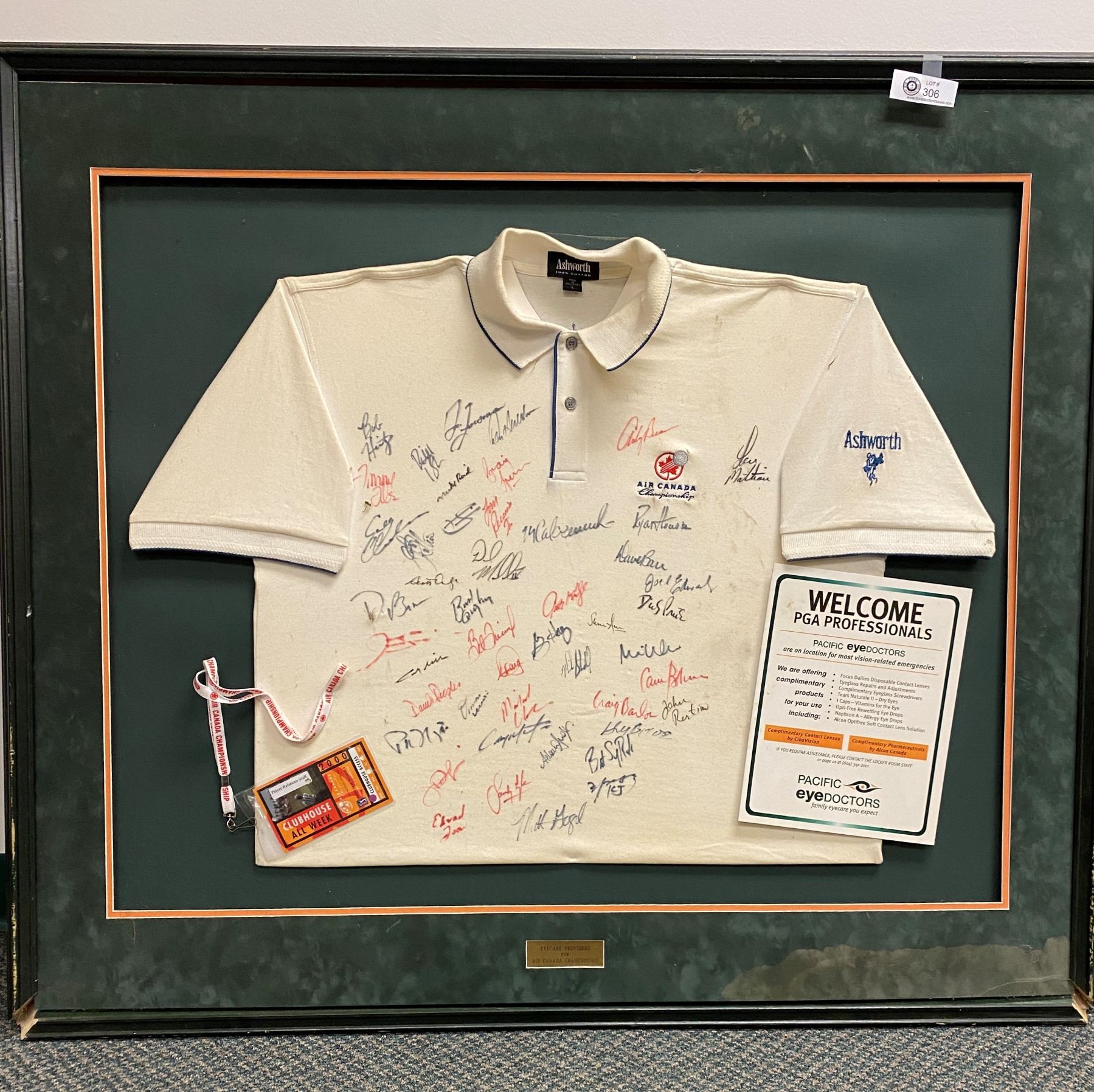 2000 Air Canada Golf Championship Framed Signed T-Shirt By The Players, No Glass On Frame, 46"x41" (For Shipping Can Send T-Shirt, Not Frame)