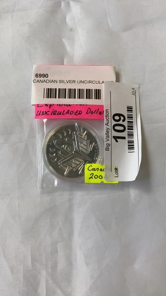 2000 CANADIAN SILVER UNCIRCULATED EXPLORATION 1 DOLLAR .500 SILVER