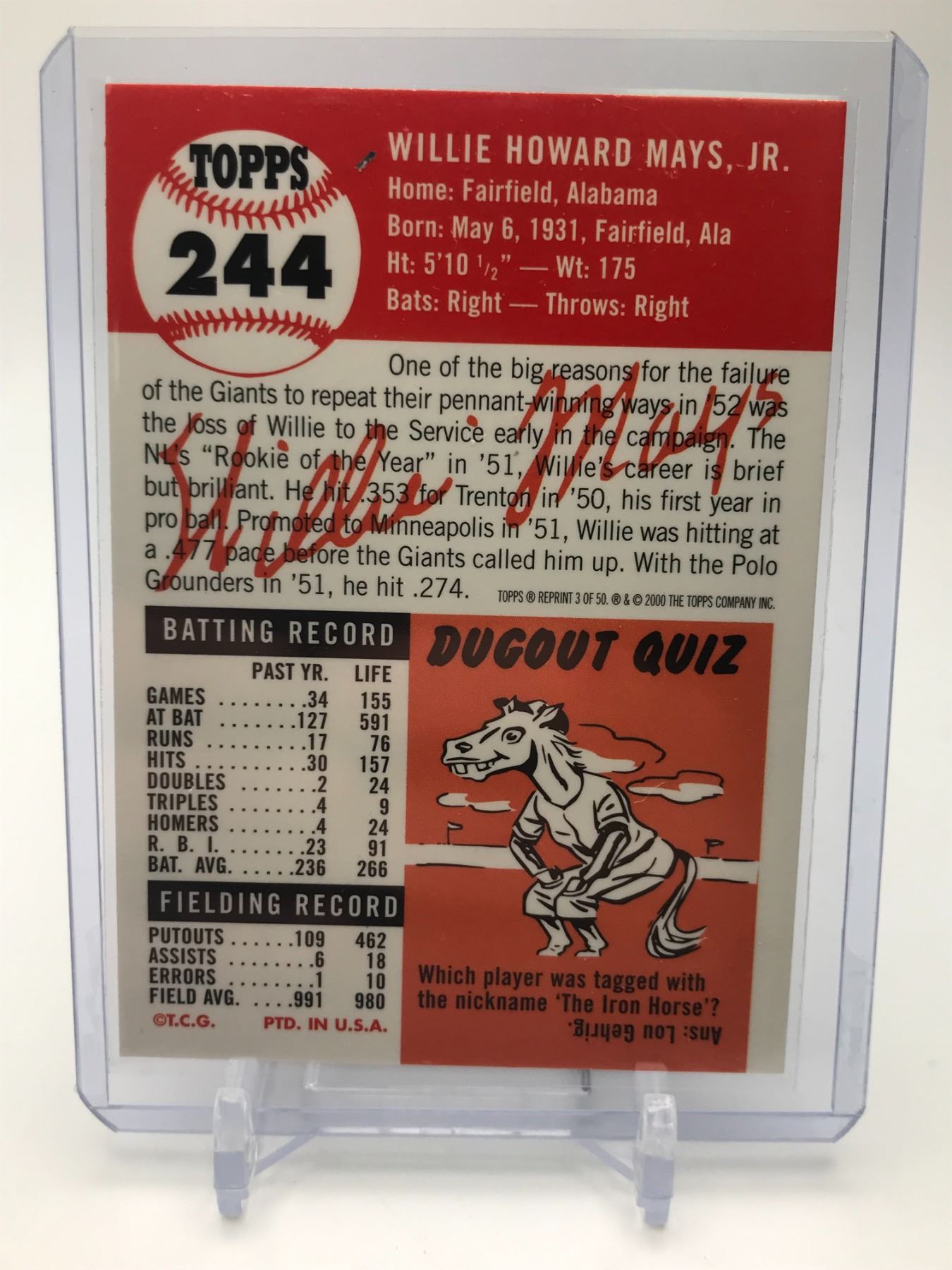 2000 Topps Willie Mays 1953 Topps Reprint NO.3
