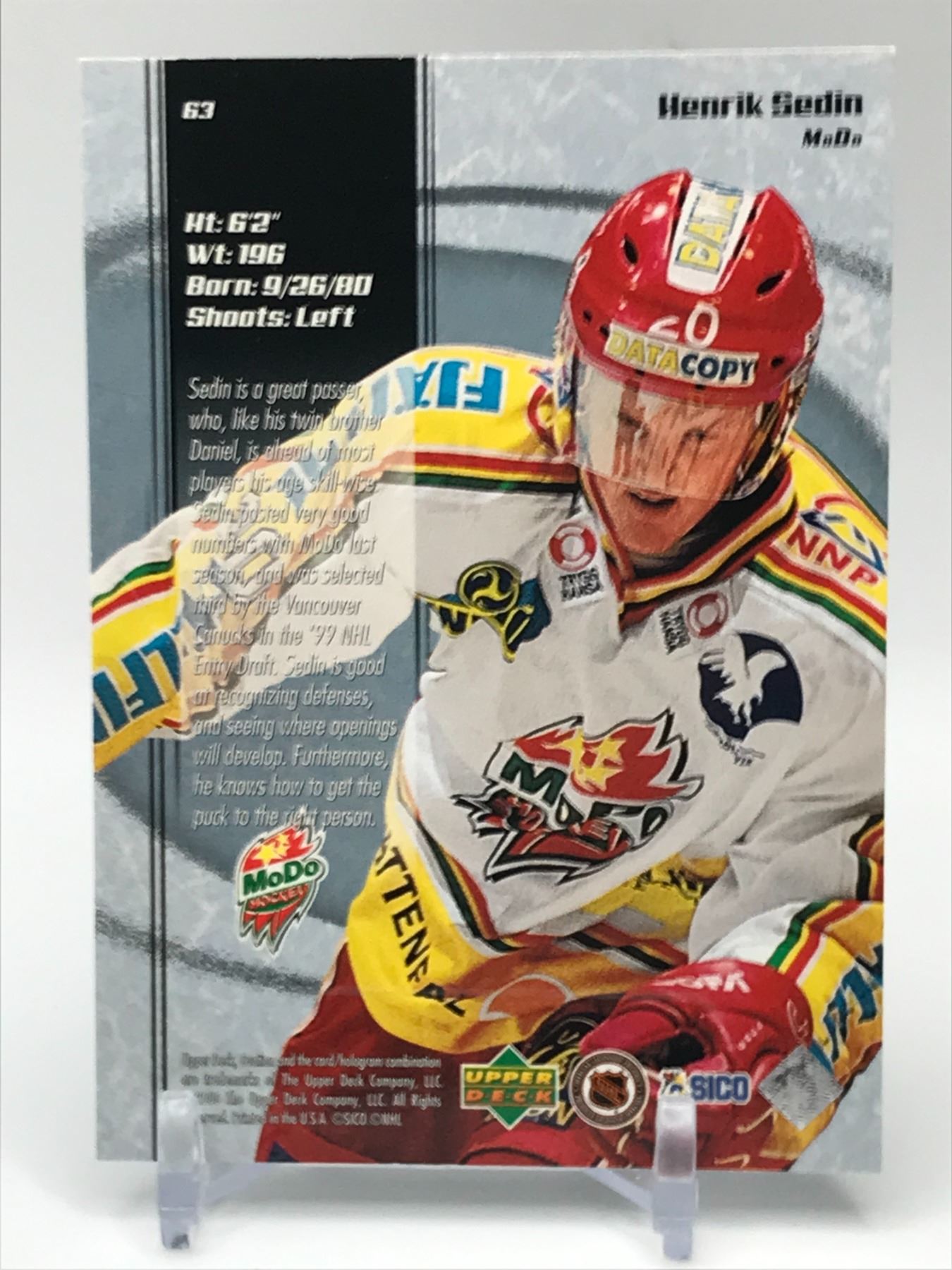 2000 UPPER DECK OVATION NO.63 HENRIK SEDIN PREMIER PROSPECTS