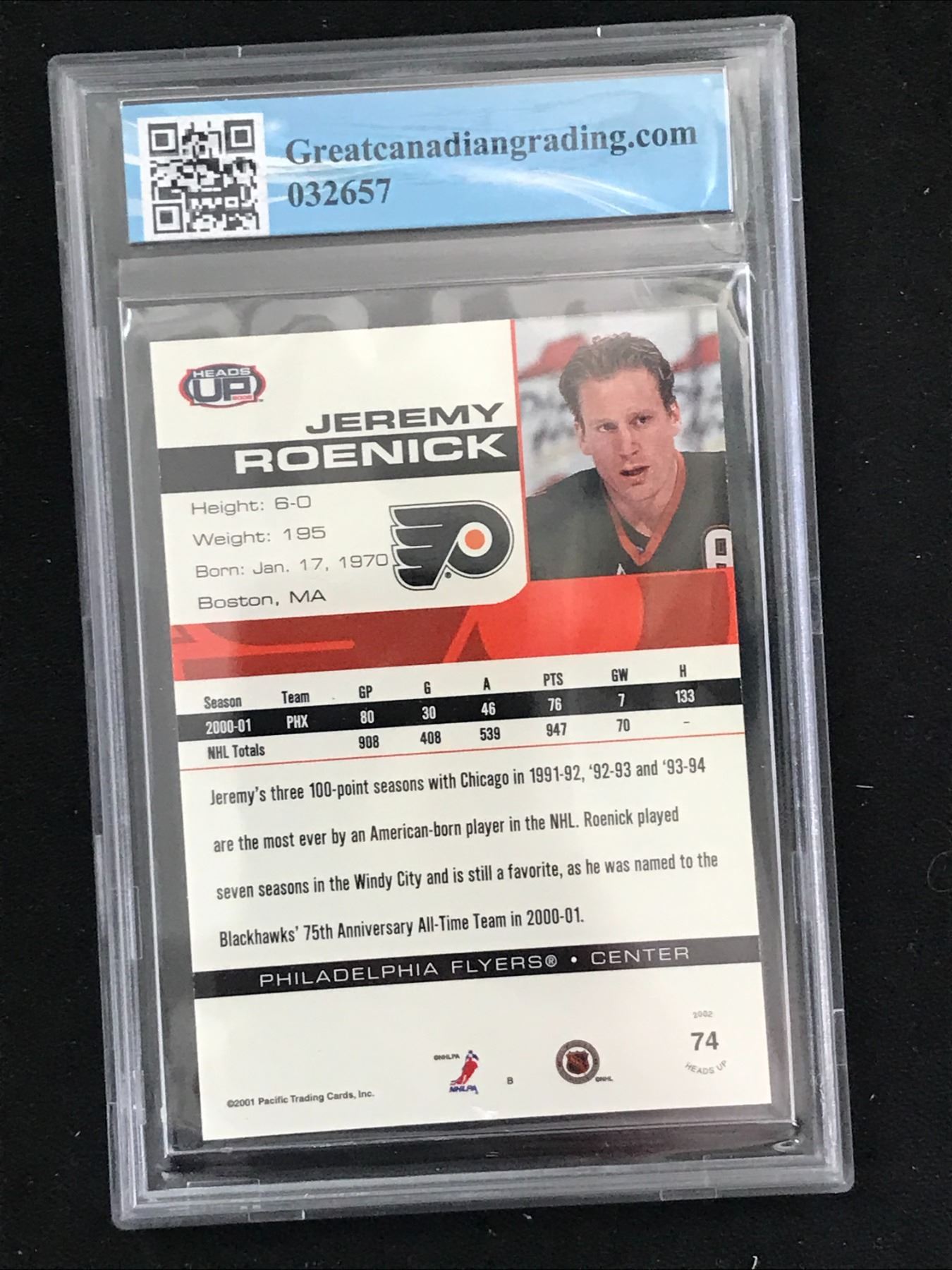 2001-02 PACIFIC JEREMY ROENICK NO. 74 096/105 (GCG 10)