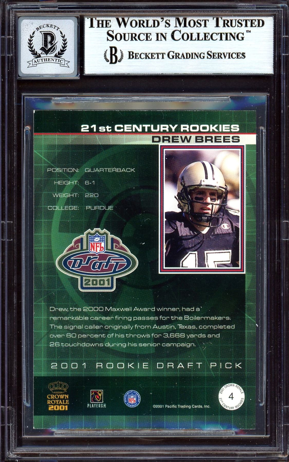 2001 CROWN ROYALE NO.4 DREW BREES 21ST CENTURY ROOKIES AUTHENTIC AUTOGRAPH (BAS 10)
