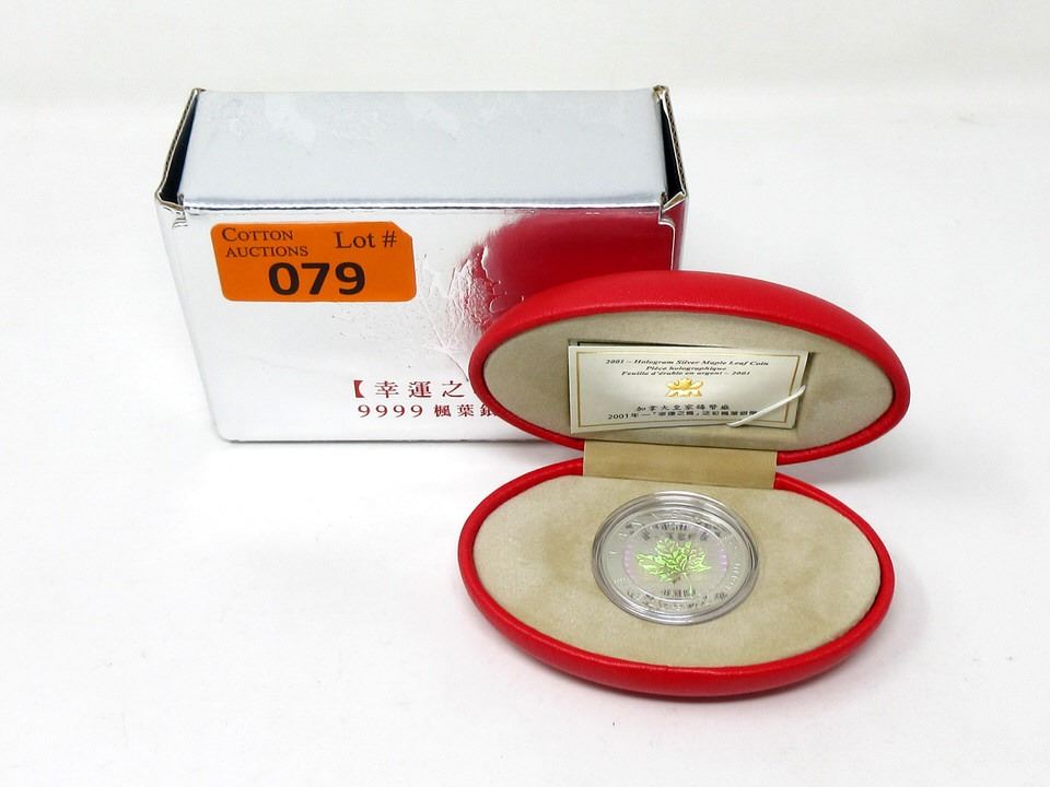 1 Ounce. Chinese Privy "Auspicious Maple". Mintage: 30,000. In original Royal Canadian Mint box with certificate. Tax exempt.