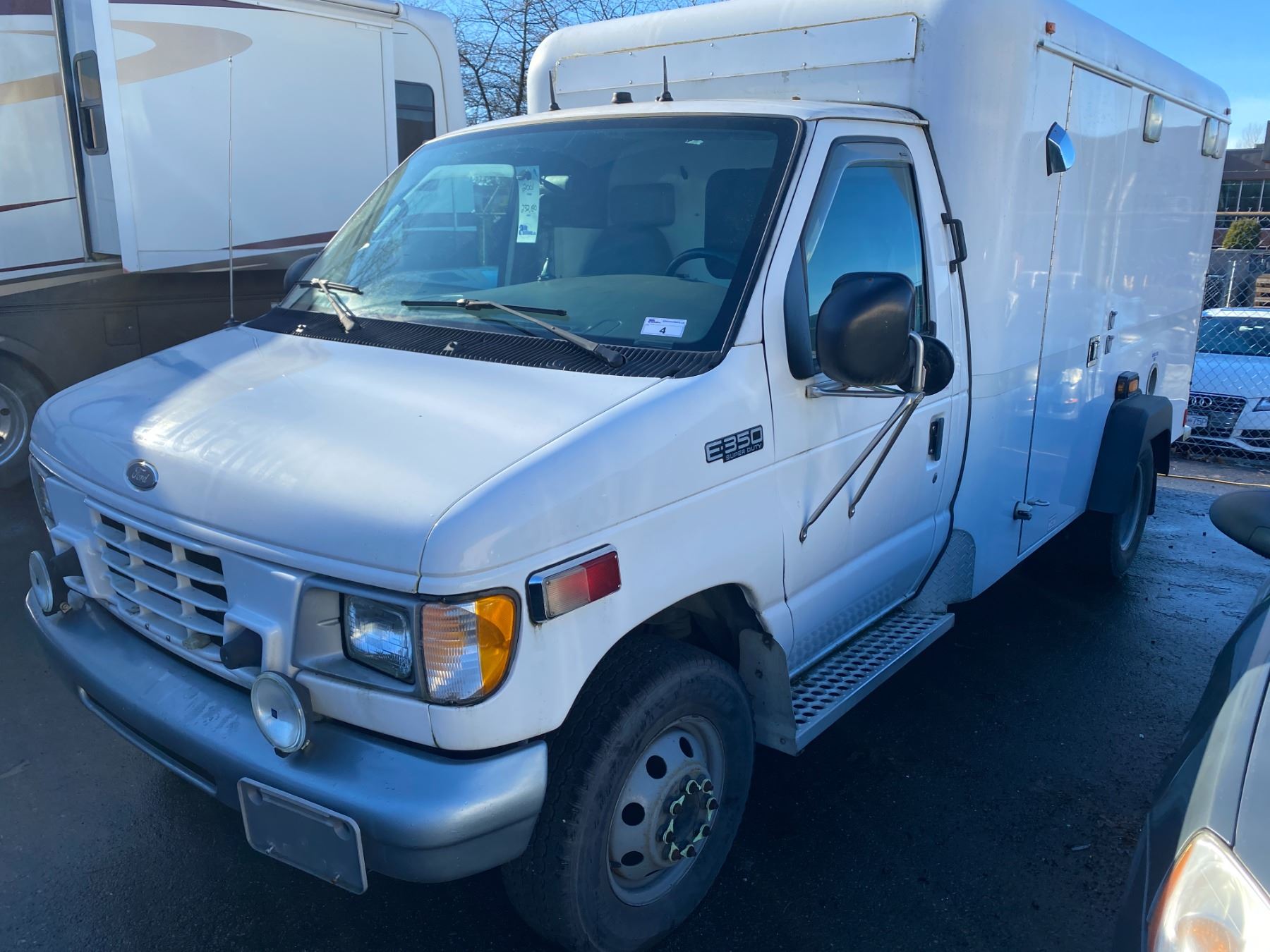 2001 FORD E-350 SUPERDUTY, 2DR CUBE VAN, X-AMBULANCE, WHITE, VIN # 1FDWE35F31HA46379 232,180KMS, DIESEL, AUTO RD,CC,AC, DOESNT HOLD CHARGE, *MUST TOW, NOT ROADWORTHY*, ICBC REPAIRED DECLARATIONS $621.01