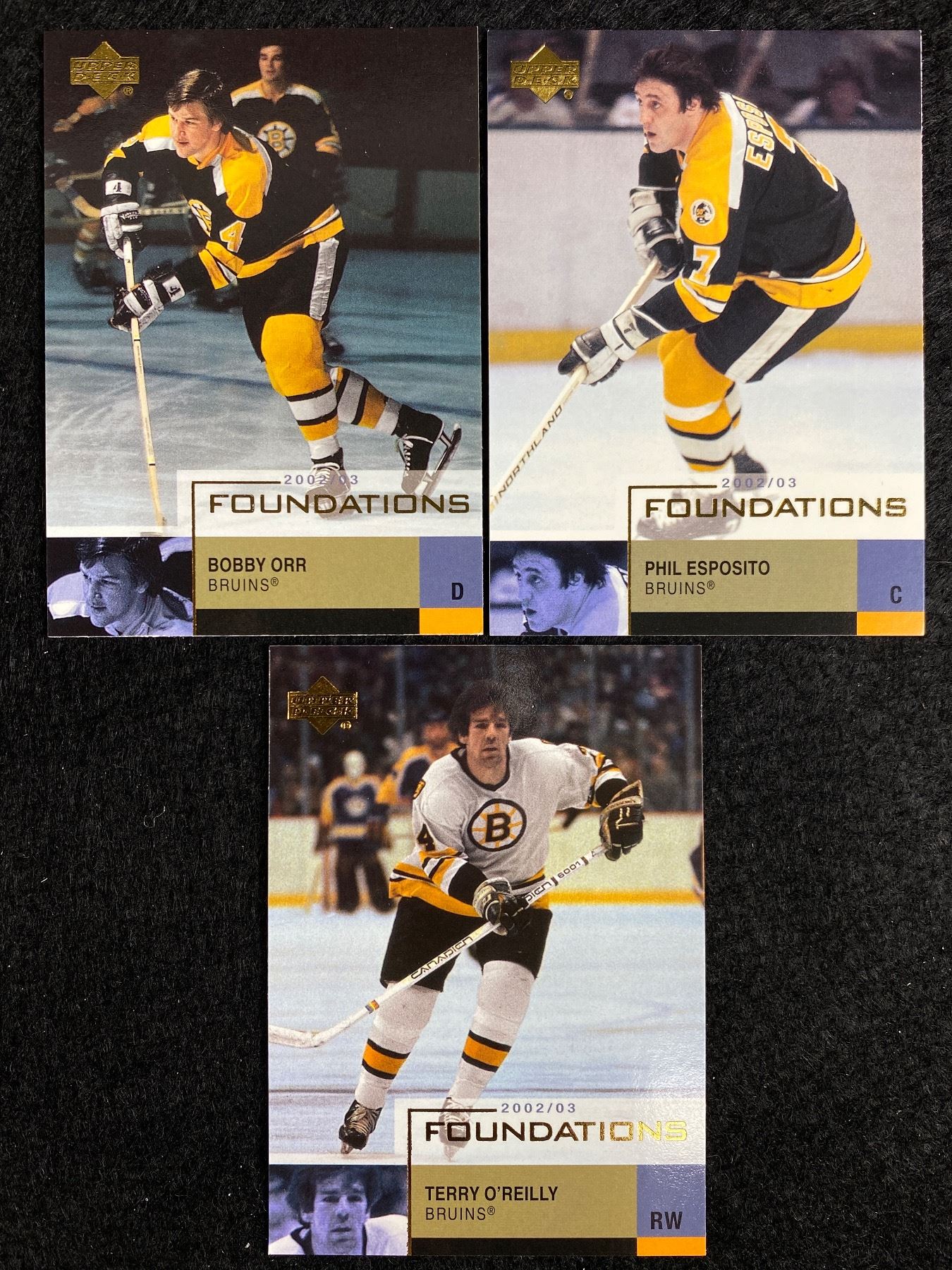 2002-03 UD Foundations Boston Bruins - Bobby Orr, Phil Esposito & Terry O'Reilly NHL Cards