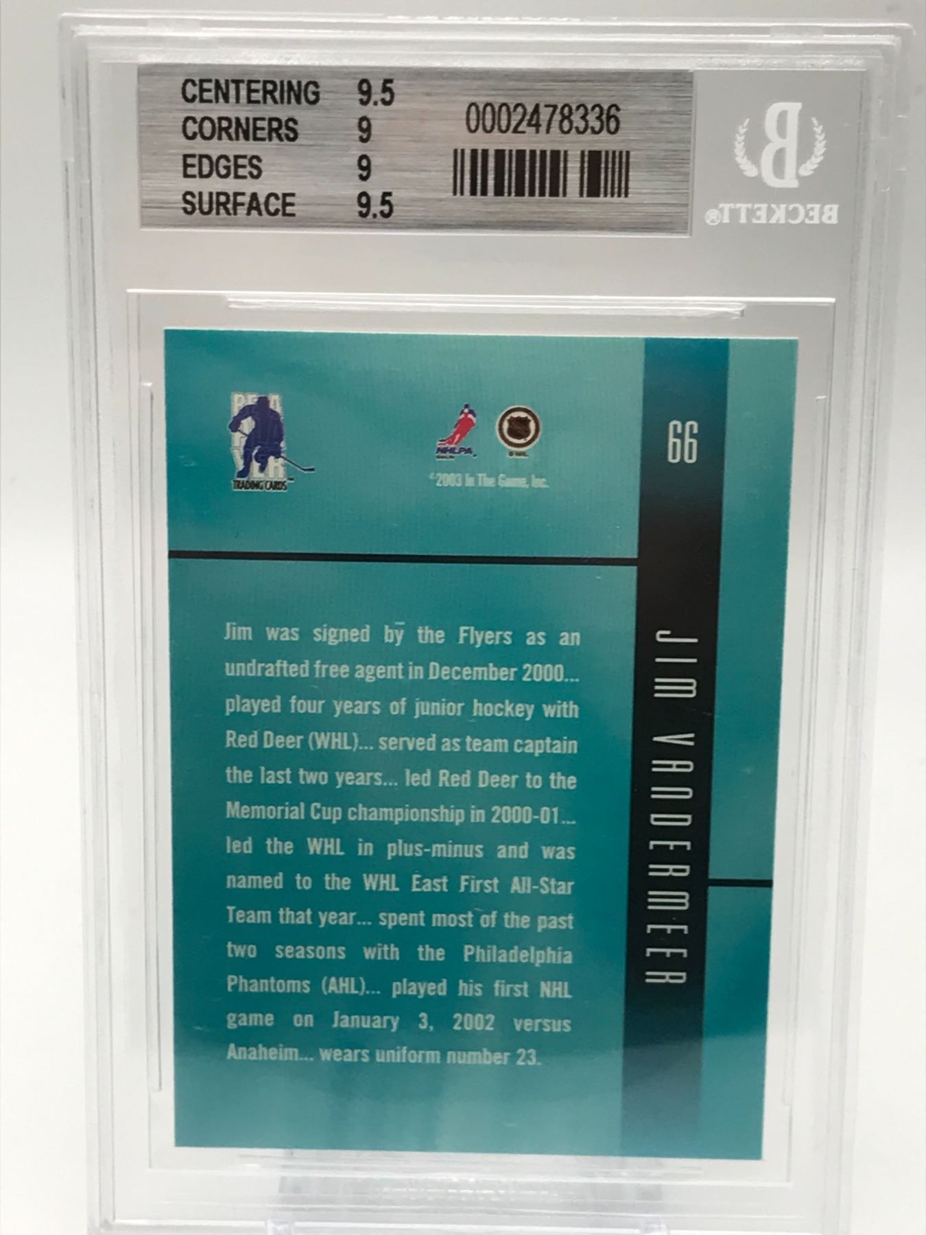 2002-3 BAP ULTIMATE MEM ULTIMATE ROOKIES JIM VANDERMEER 246 OF 250 BECKETT GRADED 9