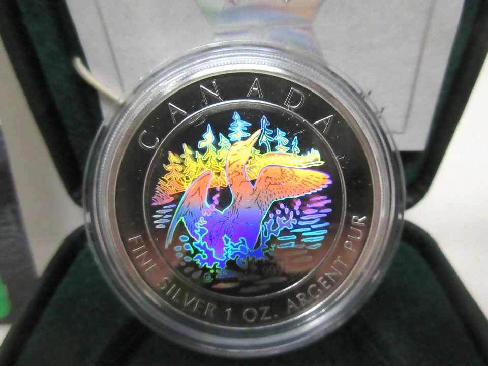Anniversary Loon. 31.39 grams. Mintage: 30,000. In original box with mint certificate. Tax exempt.