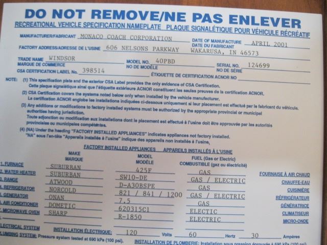 2002 MONACO WINDSOR 40' DIESEL PUSHER MOTORHOME - VIN #1RF12061X22015443