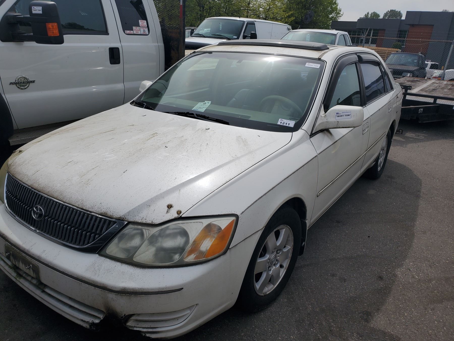 2002 TOYOTA AVALON XL, 4DR SEDAN, WHITE, VIN # 4T1BF28B92U227056 108,389MILES, GAS, AUTO OOC, HAS BC REGISTRATION, RD,CD,PW,CC,PS,AW,PL,TW,AC,LT,SR,CR WON'T START *MUST TOW, NOT SUITABLE FOR TRANSPORTATION* NO ICBC DECLARATIONS, OPEN RECALL A0H-STEERING COLUMN UPPER BRACKET, FRONT BUMPER DAMAGE
