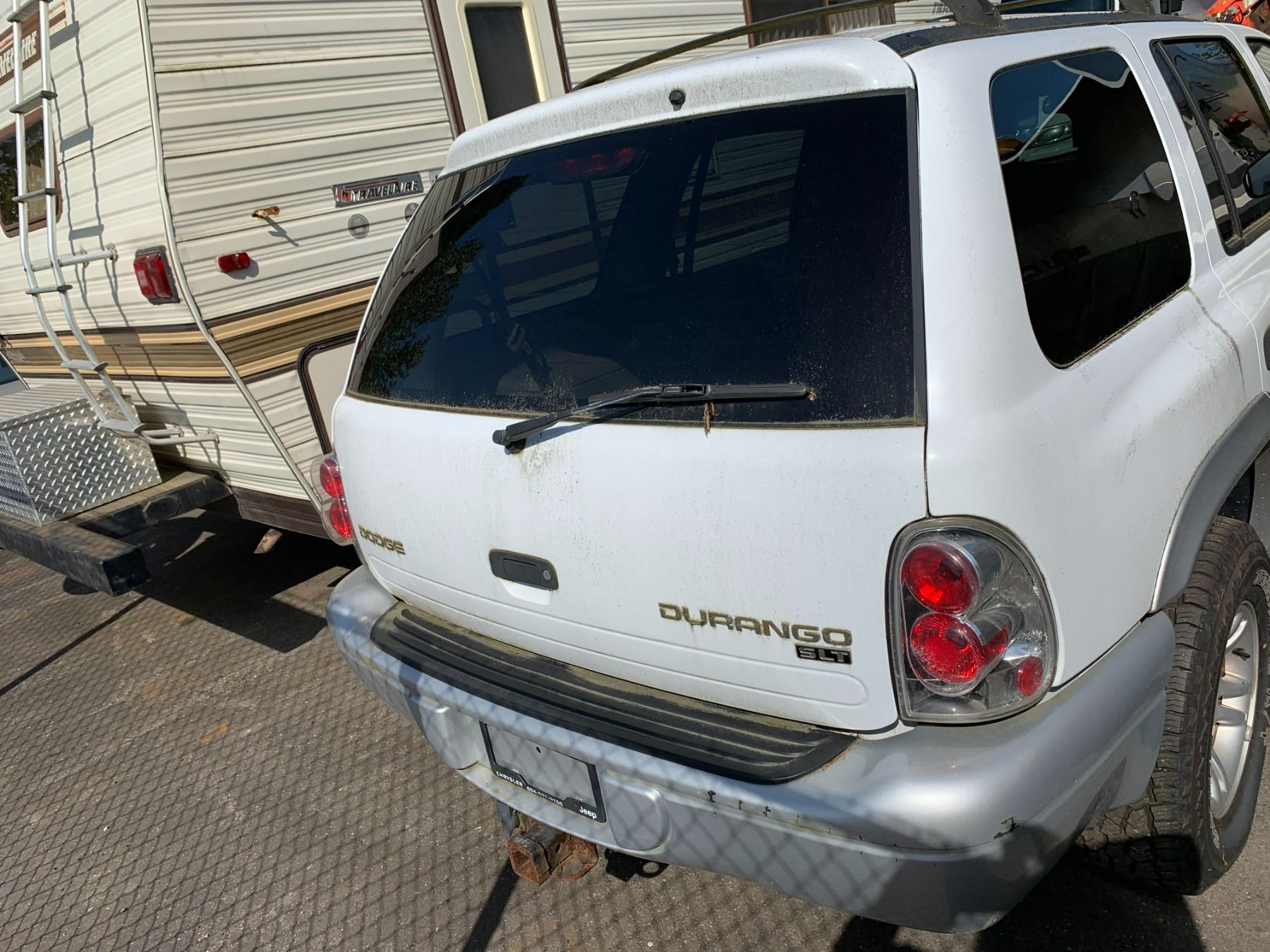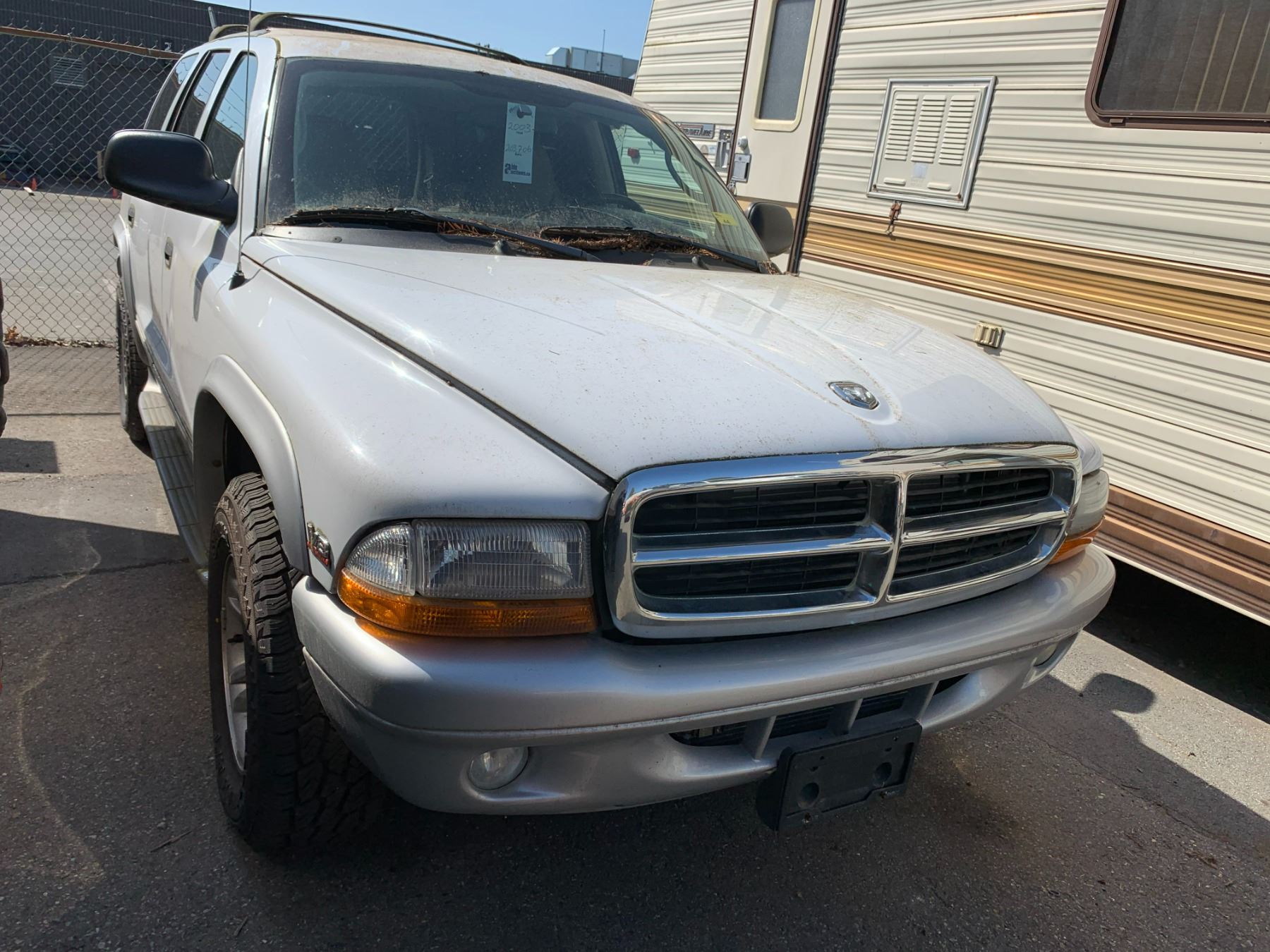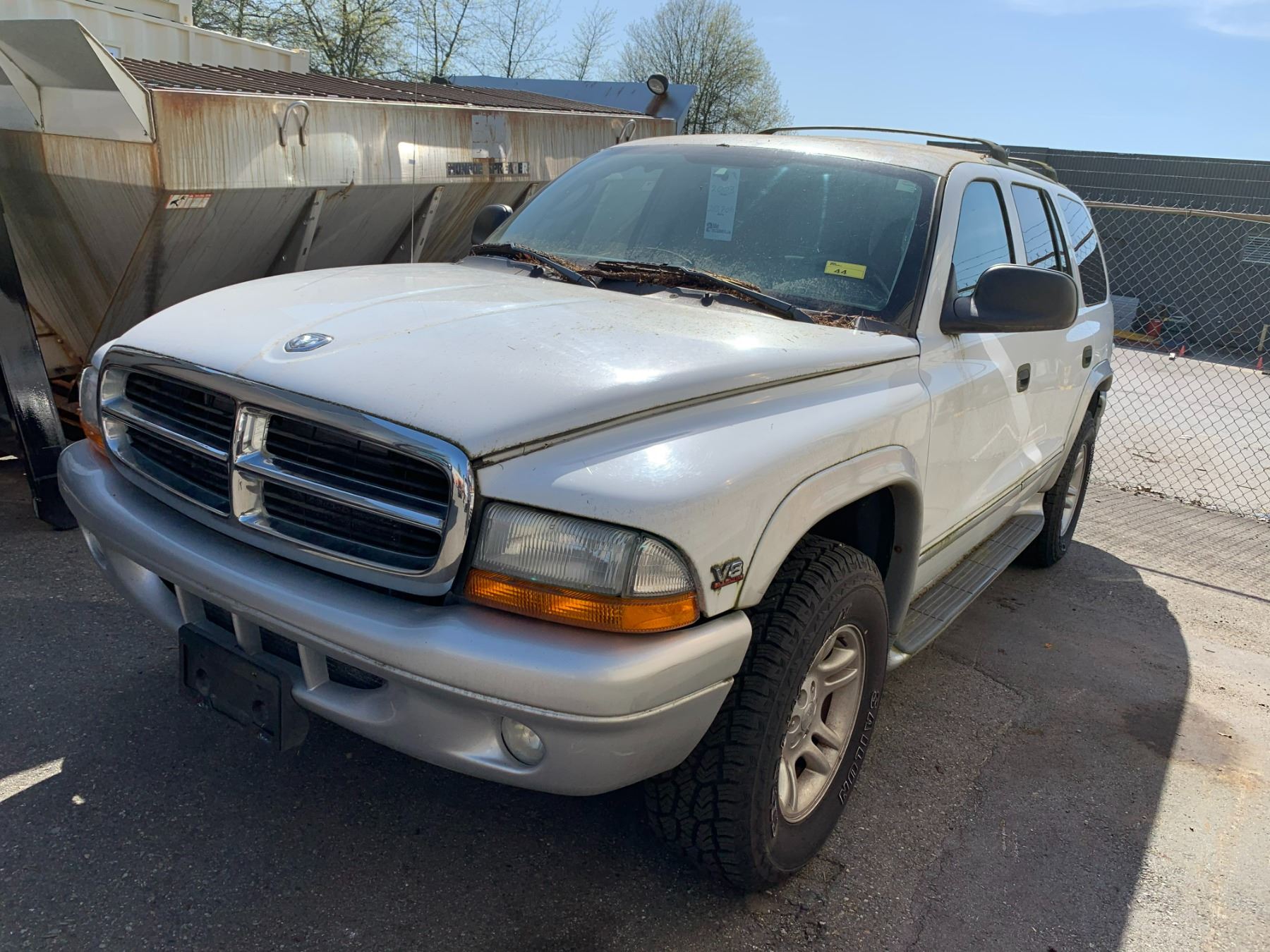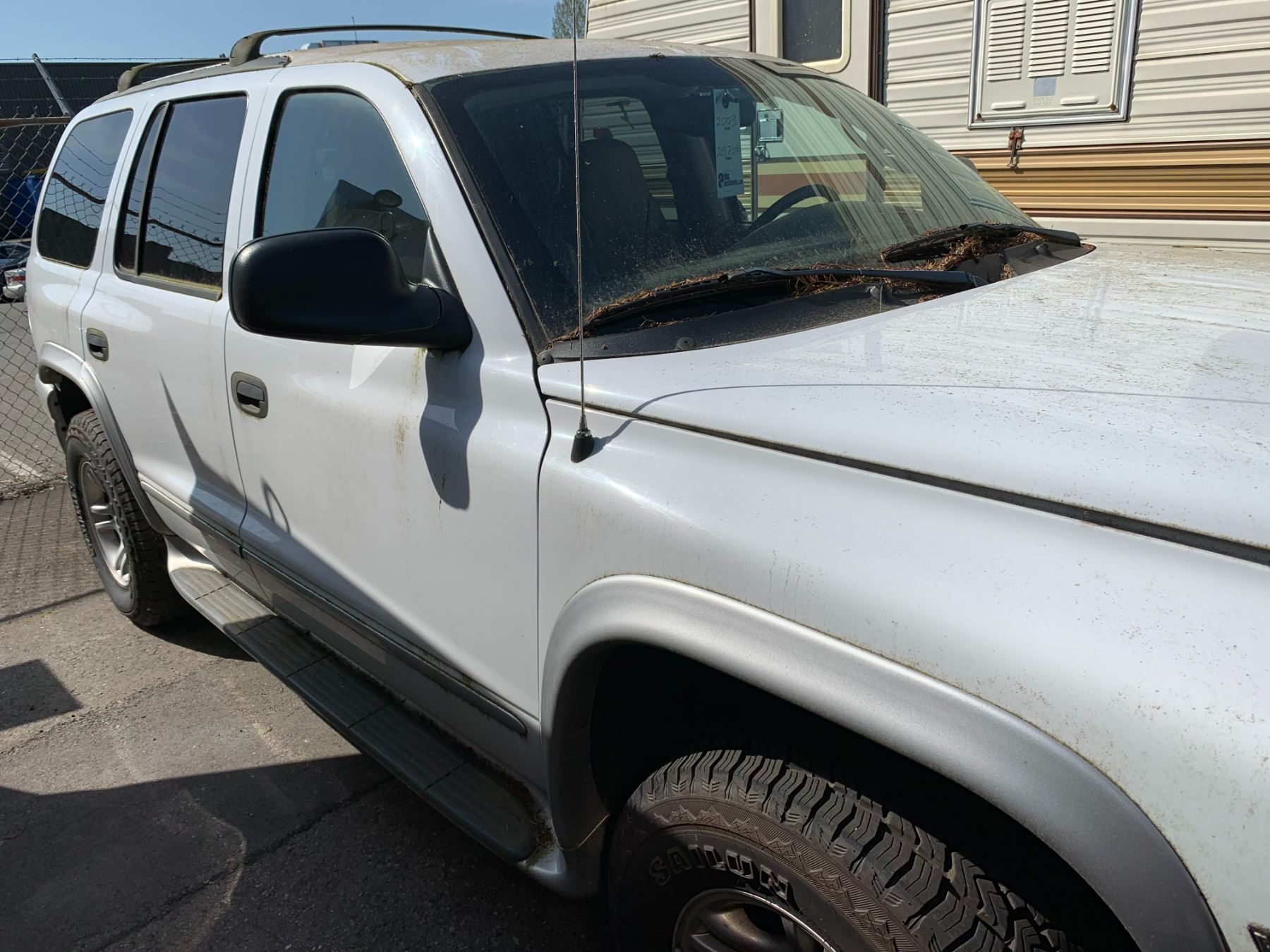 2003 DODGE DURANGO, 4DR SUV, WHITE, VIN 1D4HS58NX3F565094 203,706 KMS, GAS, 4.7L, AUTO, V8 MAGNUM, NEEDS BOOST, 2 FOBS, POWERED/HEATED SIDE MIRRORS, 7 SEATER, FOLD DOWN BACK SEAT, ROOF RACKS, NEEDS CLEANING, RD, CD, PW, RA, CC, PS, TH, PL, TW, 4W, AC, LT, HS, *HAS REGISTRATION* ICBC DECLARATIONS - 2 X REPAIRS TTL $6,172.79
