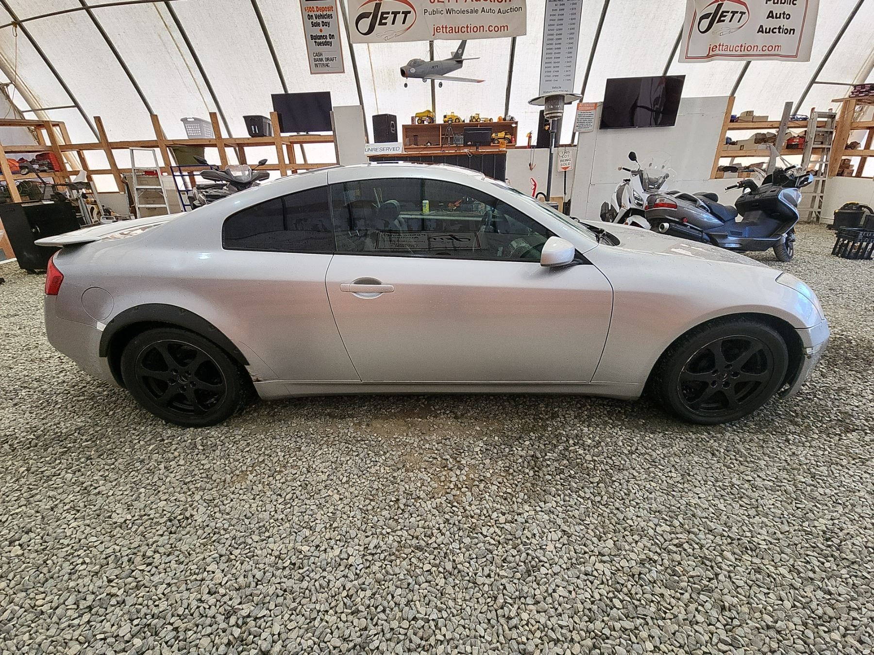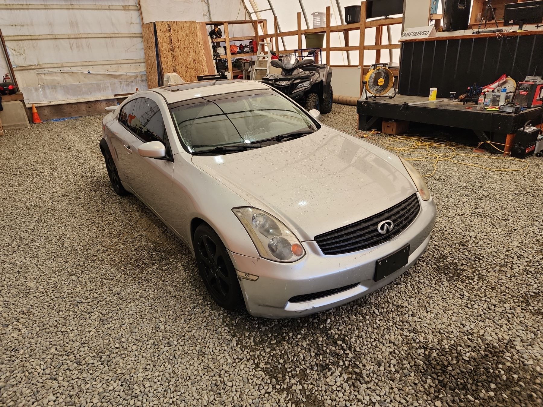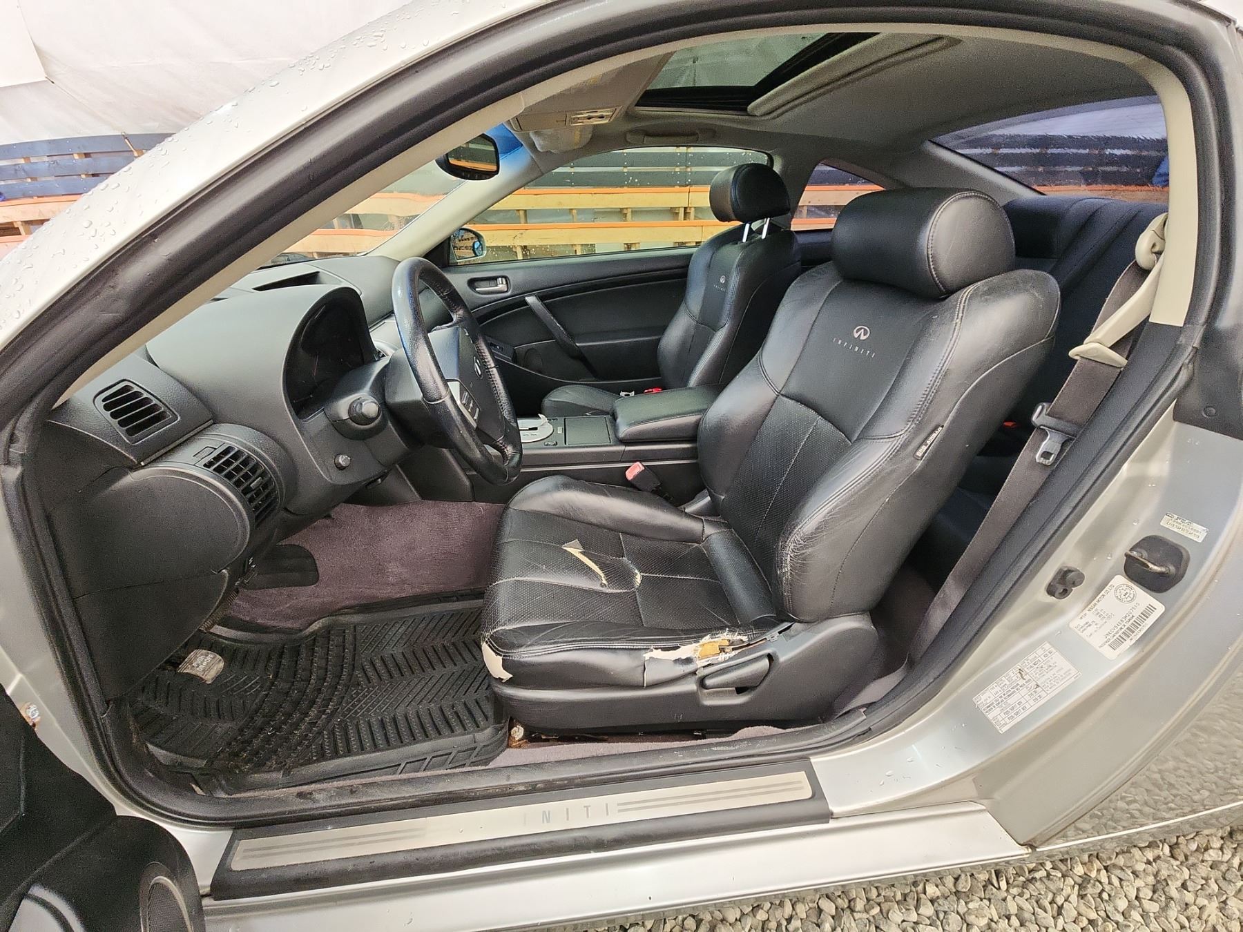 2003 INFINITI G35, SILVER, 220989 KMS, 3.5L, 6 CYLINDER, GASOLINE, AUTOMATIC WITH TIPTRONIC, TRANSMISSION, REAR WHEEL DRIVE, 4 PASSENGER. AIR CONDITIONING, POWER WINDOWS, POWER LOCKS, KEY-LESS ENTRY, TILT STEERING, CRUISE CONTROL, ALLOY WHEELS, ANTI THEFT, DUAL AIR BAGS, POWER SUNROOF, CD PLAYER, LEATHER SEATS, POWER SEATS, HEATED SEATS, TRACTION CONTROL, STEERING WHEEL CONTROLS, FOG LIGHTS, POWER MIRRORS, . DECLARATIONS: NO DESIGNATIONS 5 ACCIDENTS 0 GLASS CLAIM, TOTALLING $8708. SERVICE HISTORY SHOWS12 RECORDS. AUCTION NOTES: TMU DUE TO CARFAX DISCREPANCIES. STOCK #: B207510 JNKCV54E83M207510 NOT MECHANICALLY INSPECTED, NOT SUITABLE FOR TRANSPORTATION, MUST TOW.