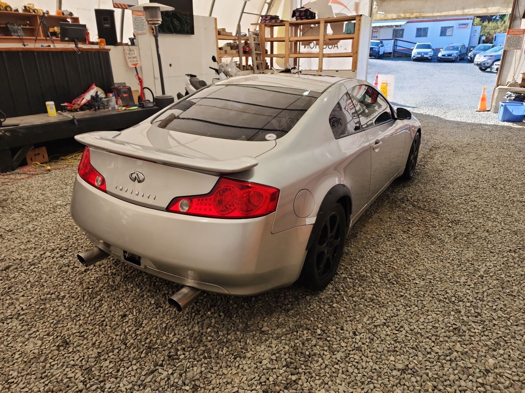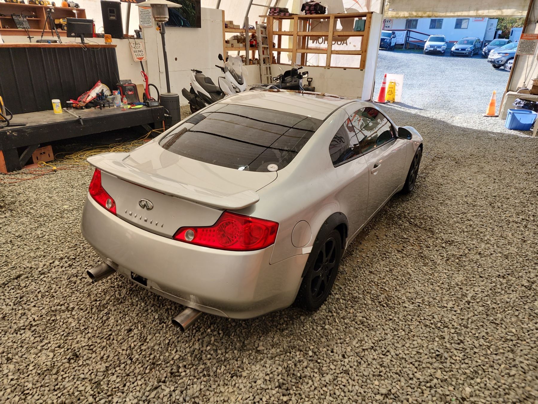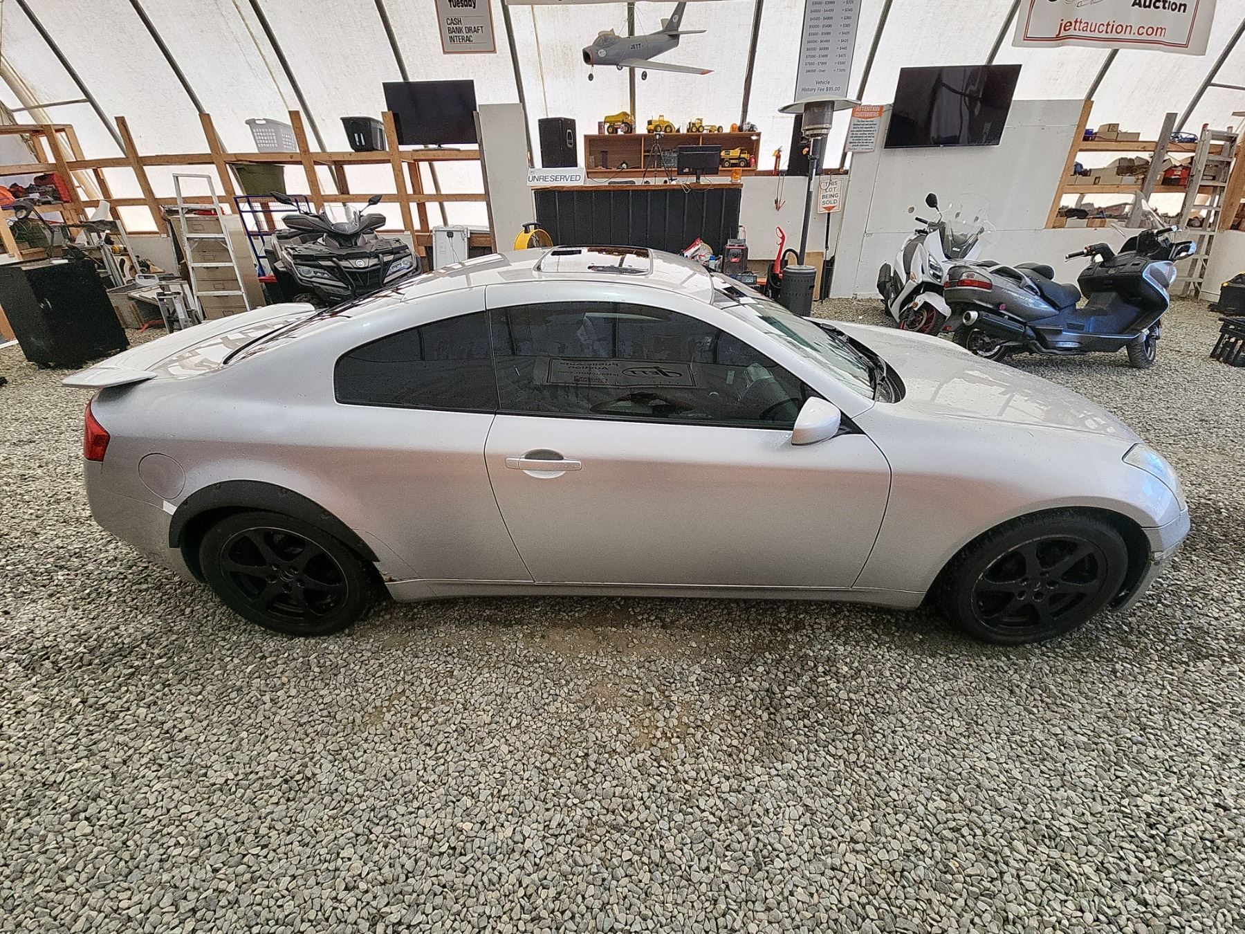 2003 INFINITI G35, SILVER, 220989 KMS, 3.5L, 6 CYLINDER, GASOLINE, AUTOMATIC WITH TIPTRONIC, TRANSMISSION, REAR WHEEL DRIVE, 4 PASSENGER. AIR CONDITIONING, POWER WINDOWS, POWER LOCKS, KEY-LESS ENTRY, TILT STEERING, CRUISE CONTROL, ALLOY WHEELS, ANTI THEFT, DUAL AIR BAGS, POWER SUNROOF, CD PLAYER, LEATHER SEATS, POWER SEATS, HEATED SEATS, TRACTION CONTROL, STEERING WHEEL CONTROLS, FOG LIGHTS, POWER MIRRORS, . DECLARATIONS: NO DESIGNATIONS 5 ACCIDENTS 0 GLASS CLAIM, TOTALLING $8708. SERVICE HISTORY SHOWS12 RECORDS. AUCTION NOTES: TMU DUE TO CARFAX DISCREPANCIES. STOCK #: B207510 JNKCV54E83M207510 NOT MECHANICALLY INSPECTED, NOT SUITABLE FOR TRANSPORTATION, MUST TOW.