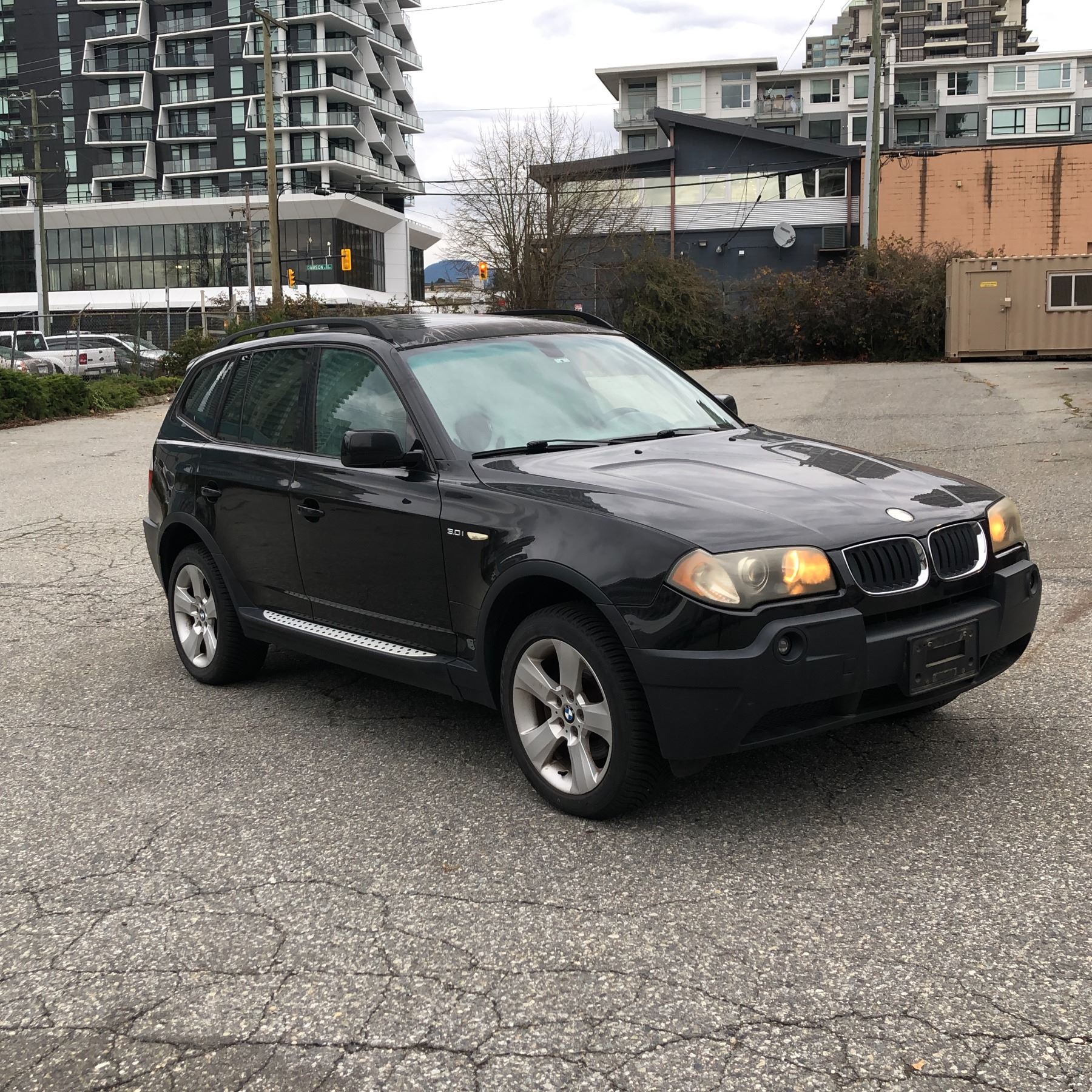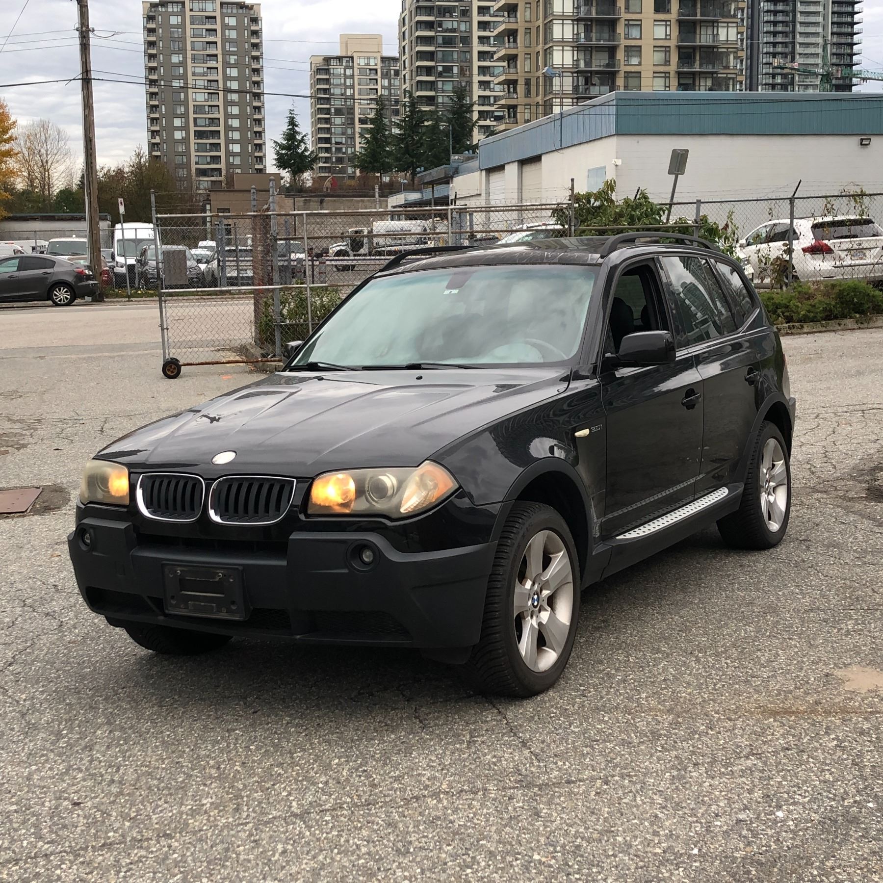 2004 BMW X3i 3 L, 6 cylinders, 225 hp. Manual transmission, 6 speed. Mileage 147,850 kms, next service at 153,000km.