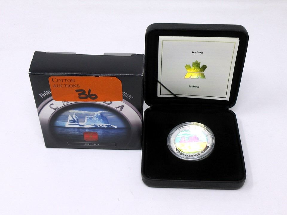 Icebergs design. 31.39 grams. Mintage: 25,000. Complete with original box and mint certificate. Tax exempt