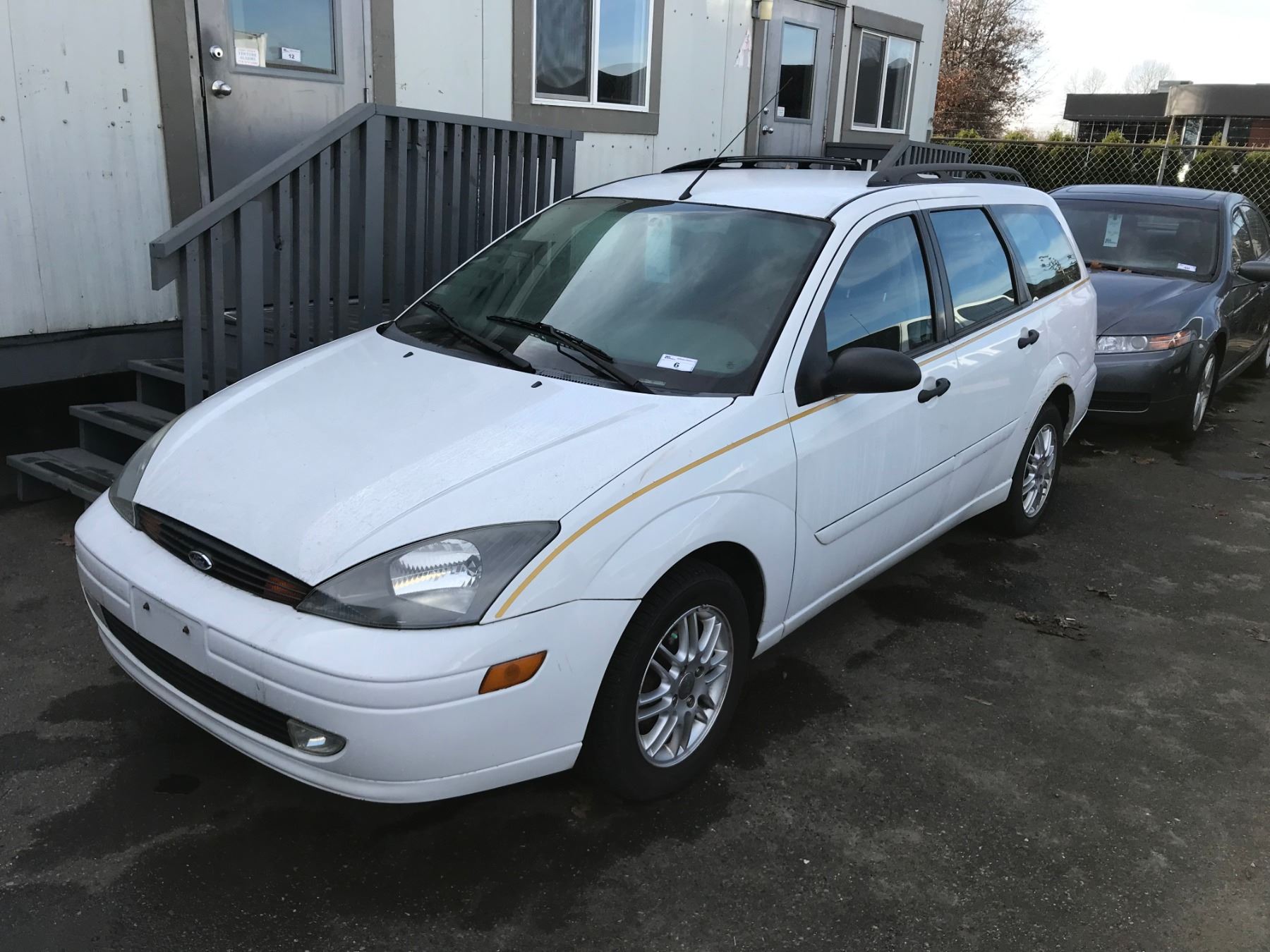 2004 FORD FOCUS SE, WHITE, 4DRSW, GAS, AUTOMATIC, VIN#1FAFP36344W204415, 81,794KMS, RD,CD,PW,AW,PL,TW,AC, LEFT DOOR STICKY, NEEDS REPAIR, NO ICBC DECLARATIONS