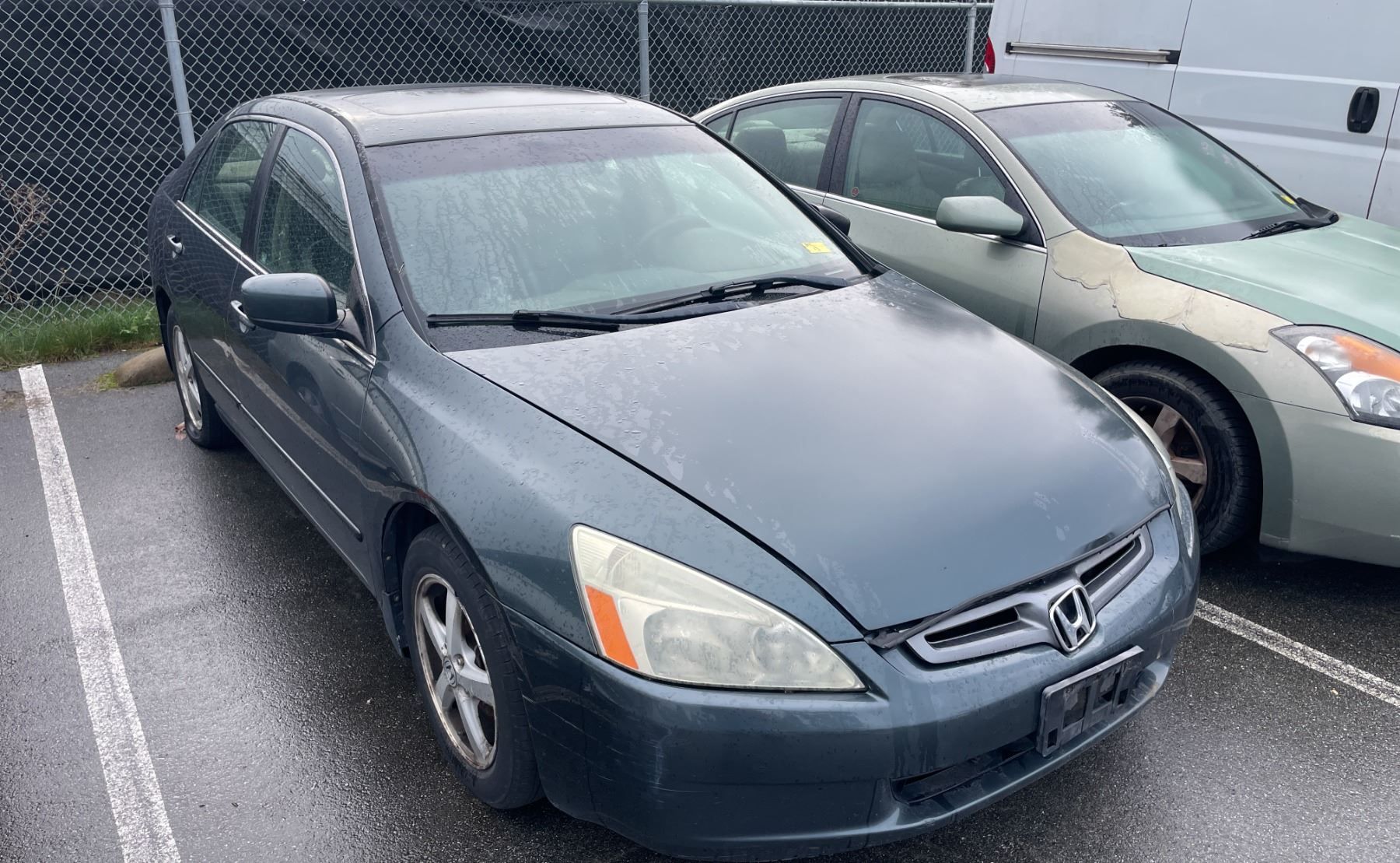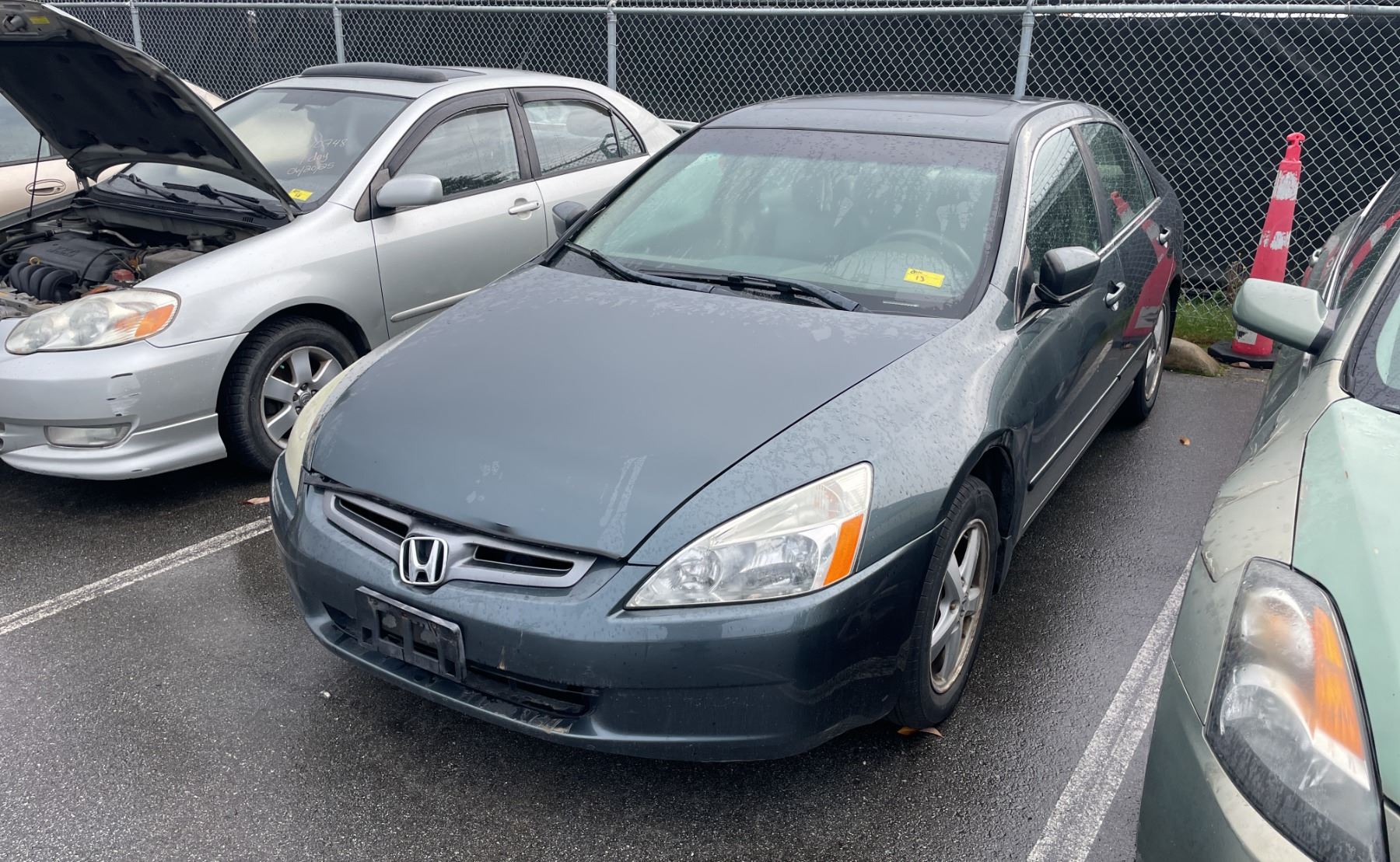 2004 HONDA ACCORD, 4DRSD, GREY, VIN 1HGCM56674A800435, TMU, GAS (G), 2.4L, AUTOMATIC, HAS REGISTRATION, MUST TOW, HAS KEYS, NEEDS JUMP, ODOR PRESENT, FEATURES: RADIO, COMPACT DISC, POWER WINDOWS, CRUISE CONTROL, POWER SEATS, QUAD SEATS, ALLOY WHEELS, POWER LOCKS, TILT WHEEL, AIR COND, LEATHER TRIM, SUNROOF, HEATED SEAT, BROKEN DRIVER SIDE MIRROR, MINOR SCRATCHES AND DENTS, MUST TOW NOT SUITABLE FOR TRANSPORTATION, 3 ICBC DECLARATIONS NO DETAILS, 1 ICBC ESTIMATE $587.50, 4 ICBC REPAIRED DECLARATIONS $6,019.75