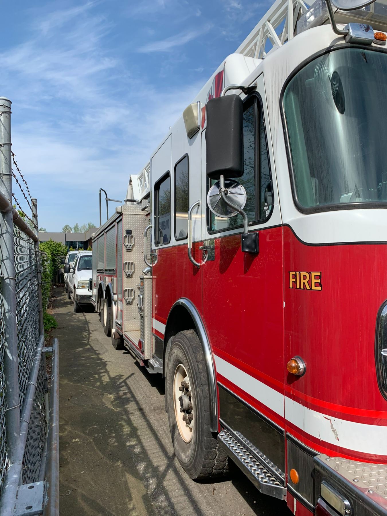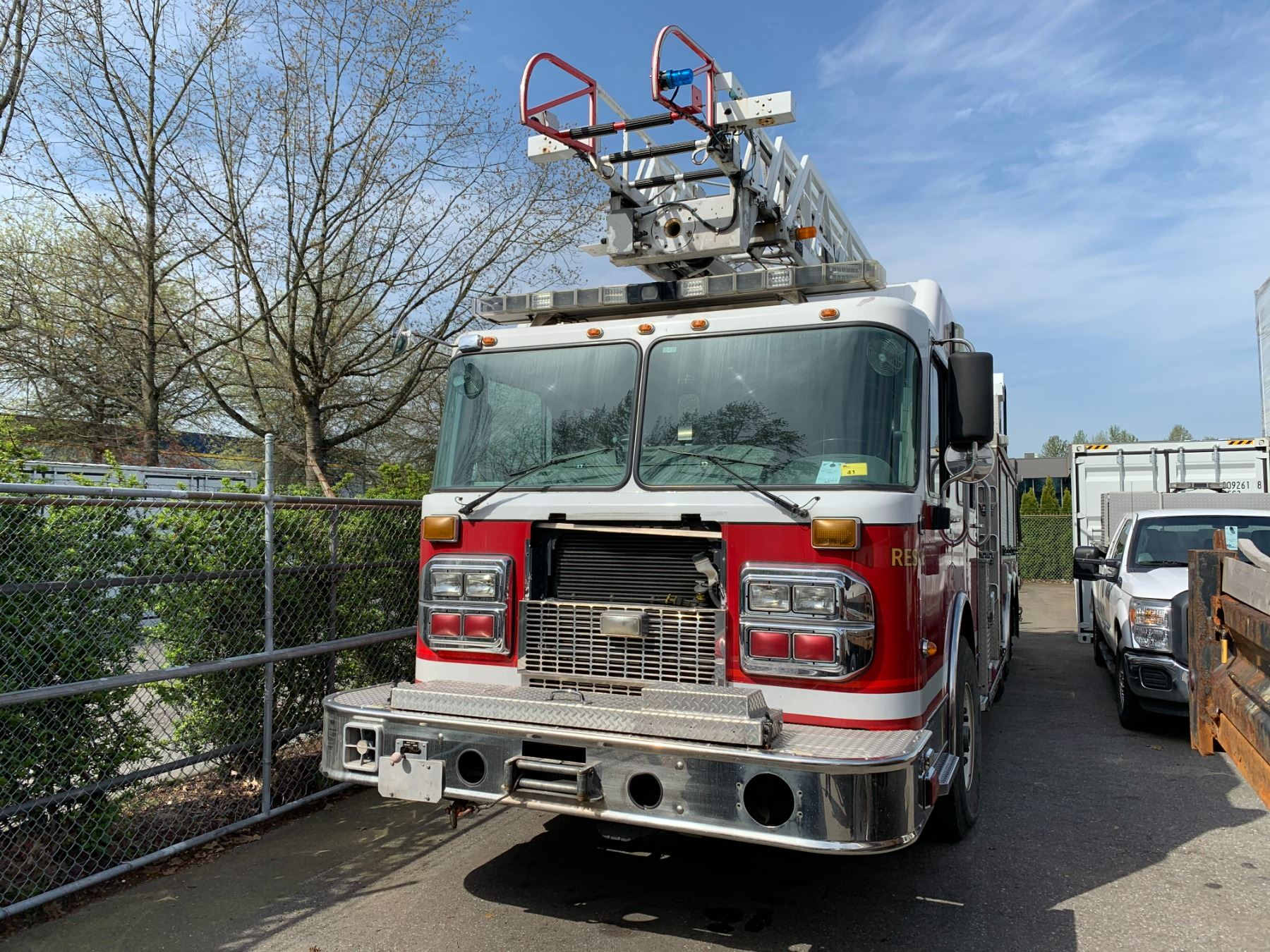 2004 SPARTAN LADDER FIRE TRUCK, GLADIATOR CLASSIC, RED, VIN 4S7AW2F924C047666 265,628 KMS, DIESEL, AUTO, X-CITY, PART OF FRONT GRILL IS MISSING, ROLL UP DOORS BOTH SIDES FOR STORAGE, SOME MOLD, STORAGE COMPARTMENTS IN BACK, ROTATING LADDER PLATFORM ON TOP, CONTROL BOX, SAFETY GUARD RAILS, PUSH START, 6 SEATER, REAR CAB TEAR IN SEAT, STORAGE UNDER DOUBLE SEAT, TOW WENCH IN FRONT, RA, TW, AC, 23M LADDER OOC *HAS BC REGISTRATION* NO ICBC DECLARATIONS