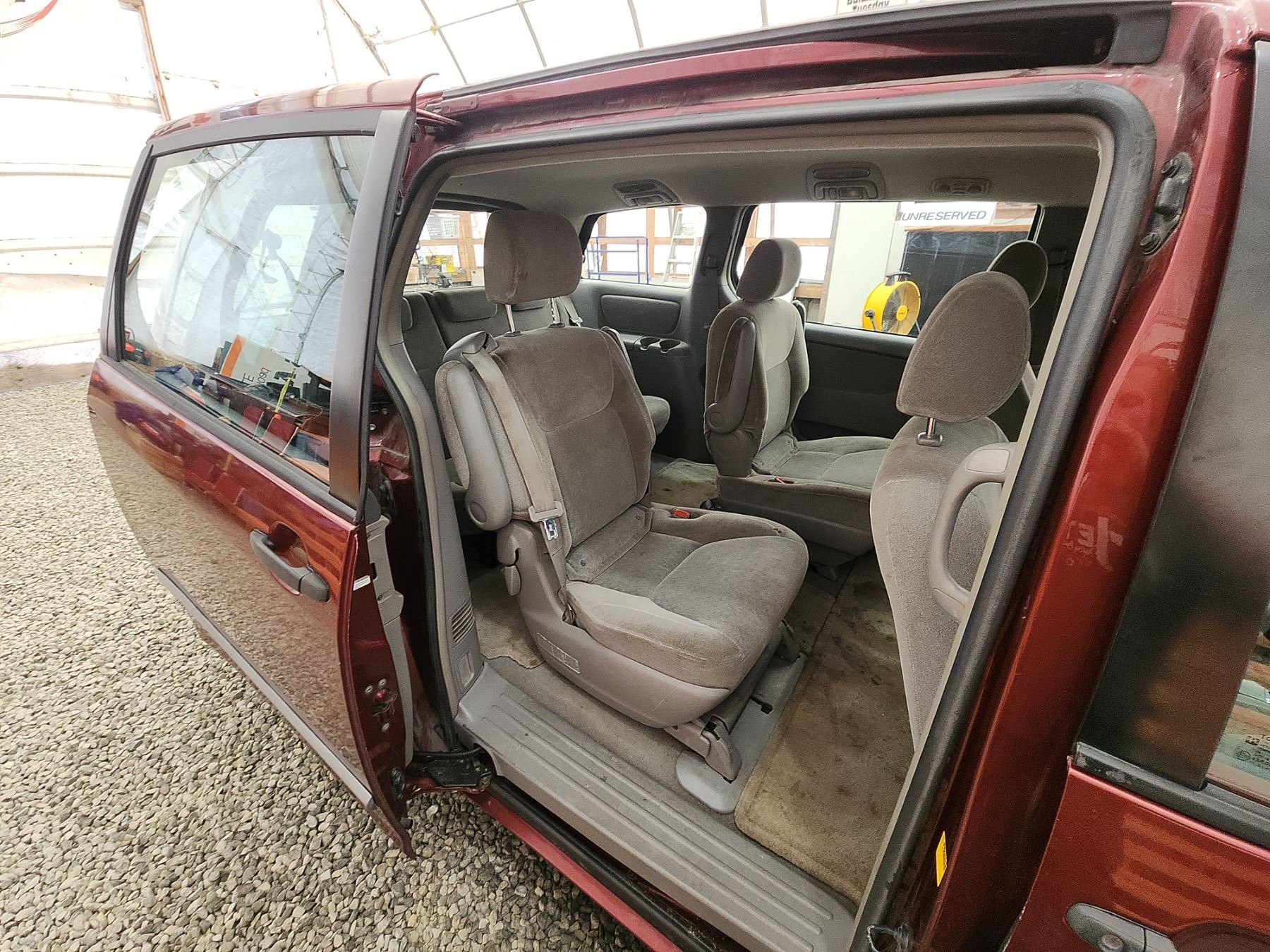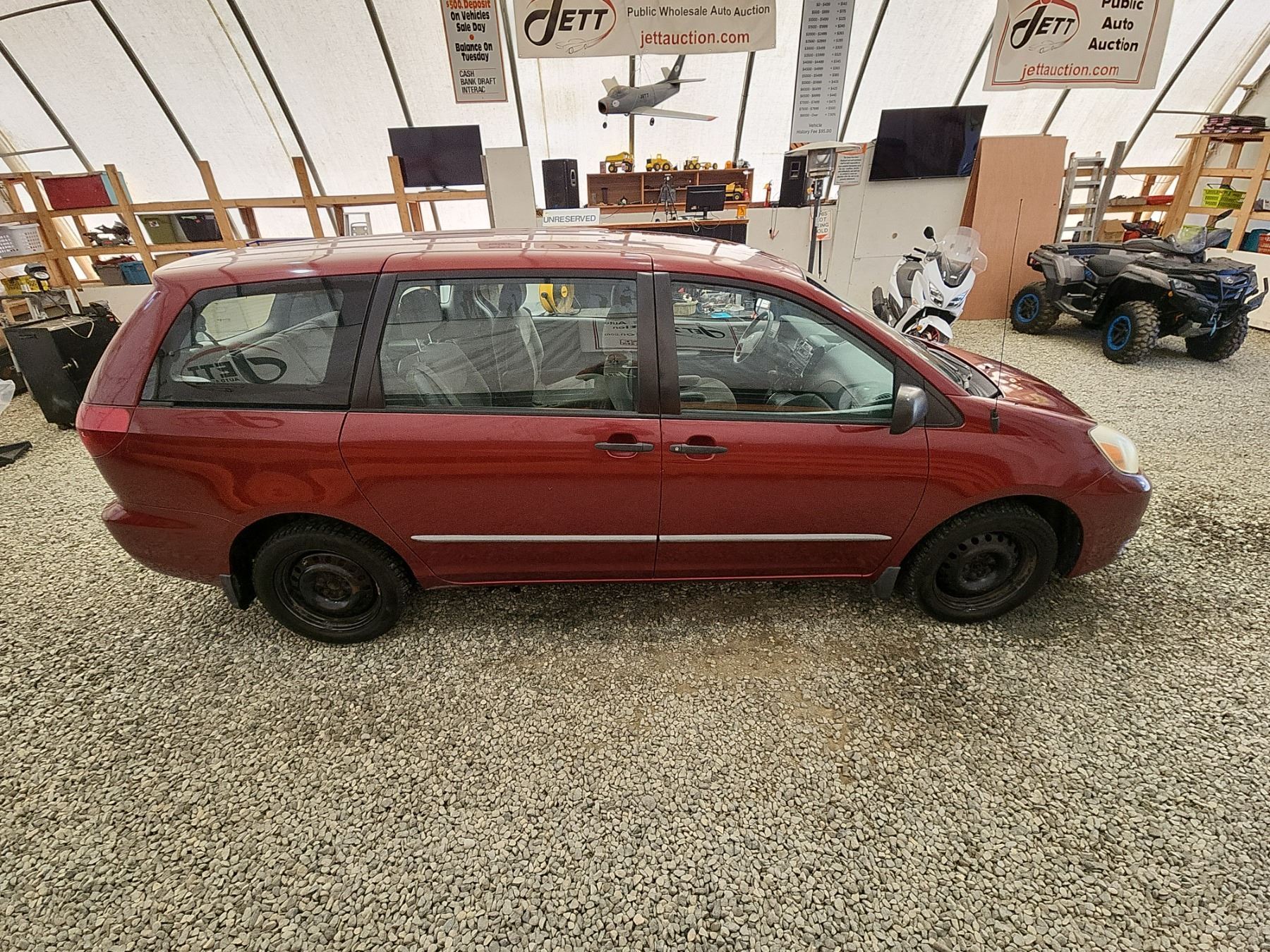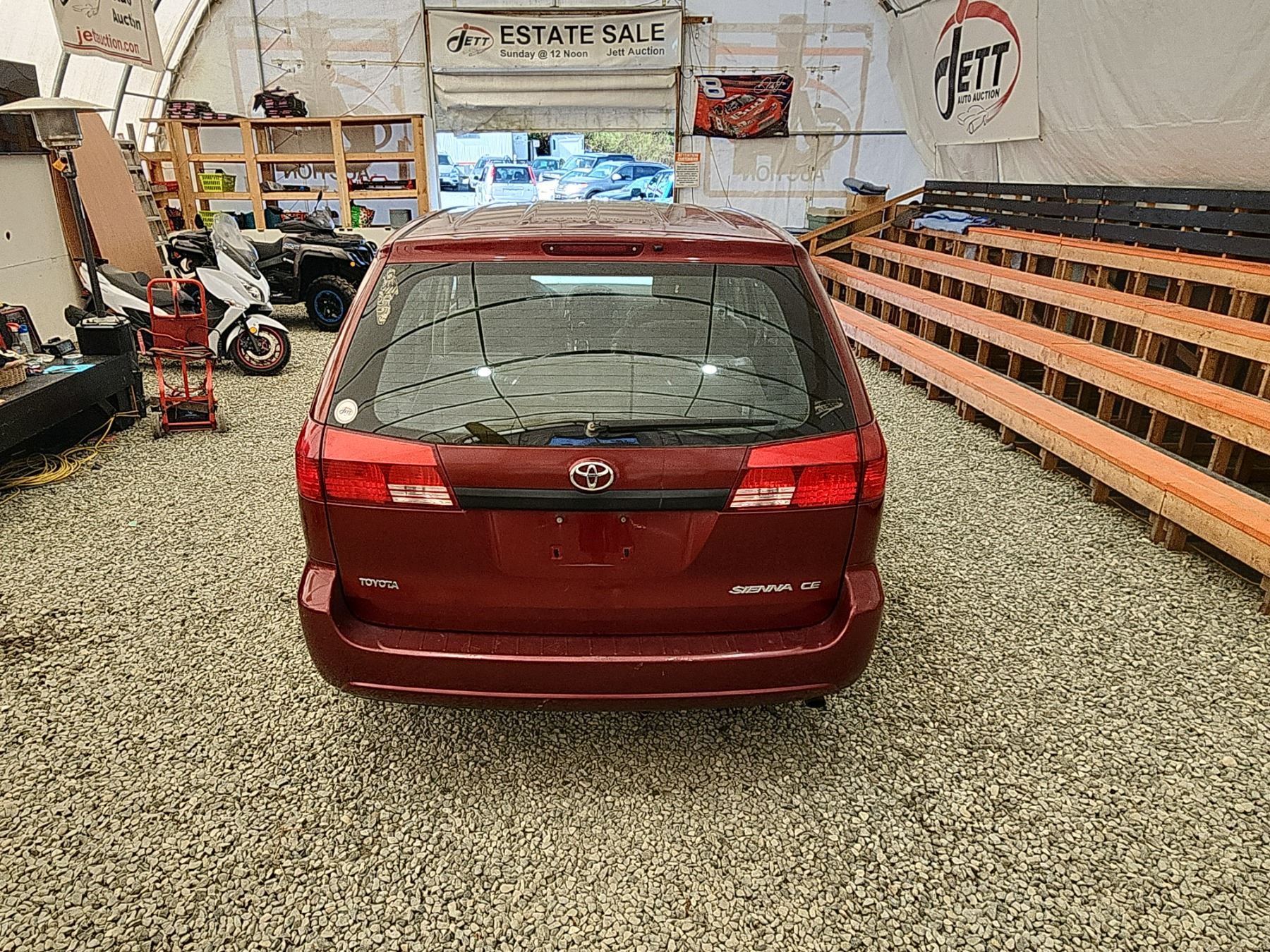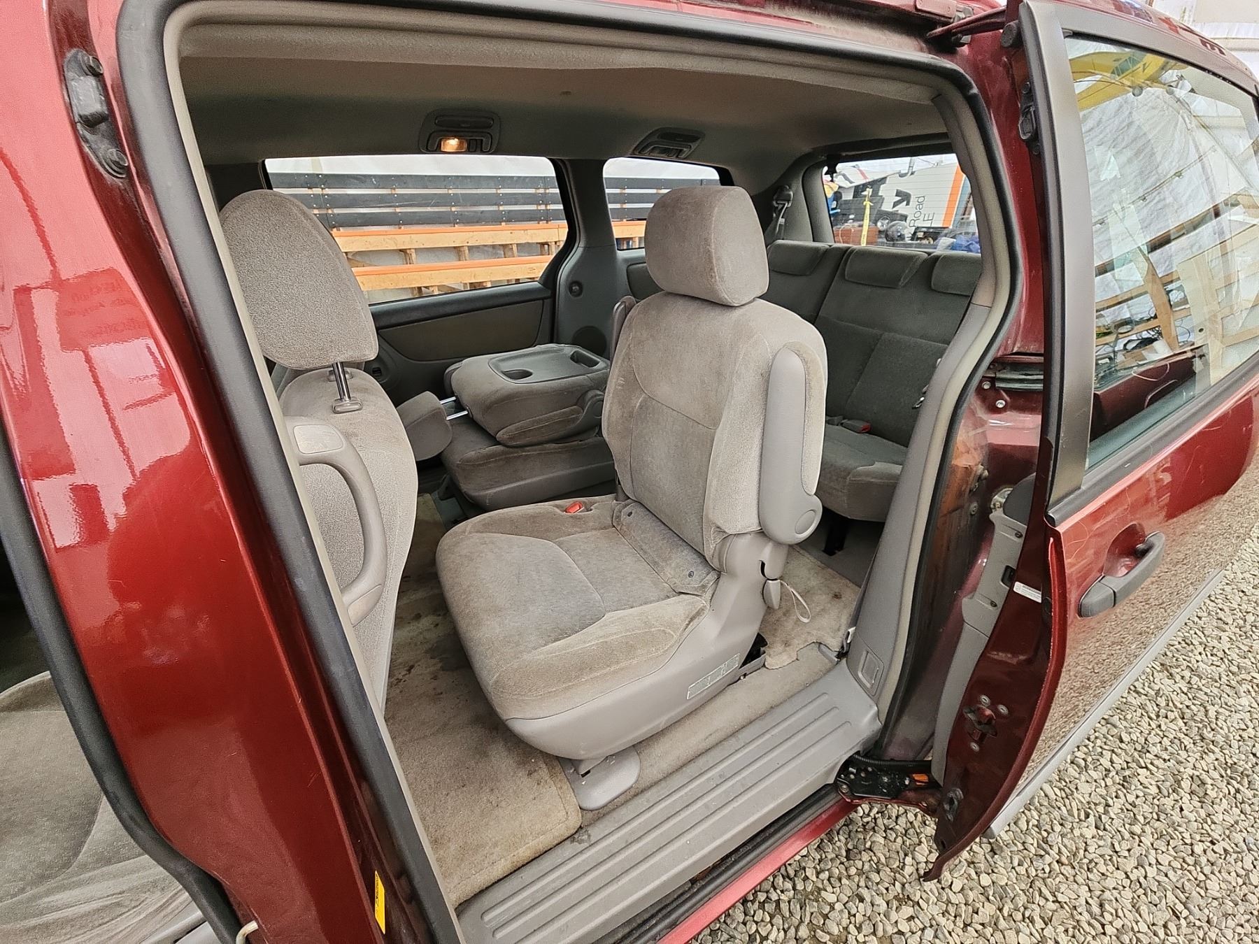 2004 TOYOTA SIENNA, RED, 351230 KMS, 3.3L, 6 CYLINDER, GASOLINE, AUTOMATIC, TRANSMISSION, FRONT WHEEL DRIVE, 7 PASSENGER. AIR CONDITIONING, POWER WINDOWS, POWER LOCKS, KEY-LESS ENTRY, TILT STEERING, ANTI THEFT, DUAL AIR BAGS, CD PLAYER, REAR HEAT AND AIR, POWER MIRRORS, NO REPORTED ACCIDENTS., CHIP OR CRACK IN WINDSHIELD, SPLIT-FOLDING REAR SEATS. DECLARATIONS: EX-LEASE 0 ACCIDENTS 0 GLASS CLAIM, TOTALLING $0. SERVICE HISTORY SHOWS11 RECORDS. AUCTION NOTES: STOCK #: D210462 5TDZA29C14S210462 NOT MECHANICALLY INSPECTED, NOT SUITABLE FOR TRANSPORTATION, MUST TOW.