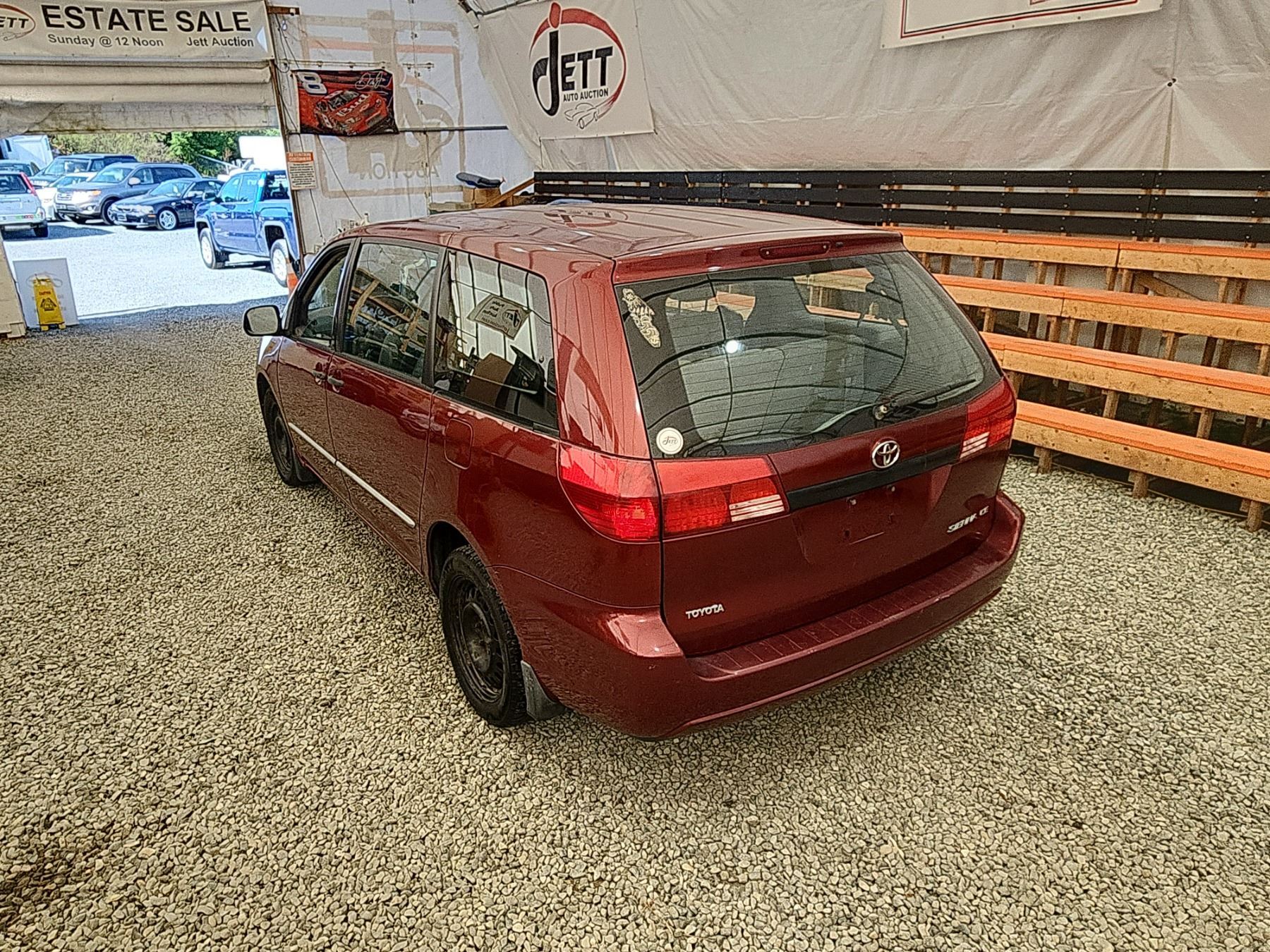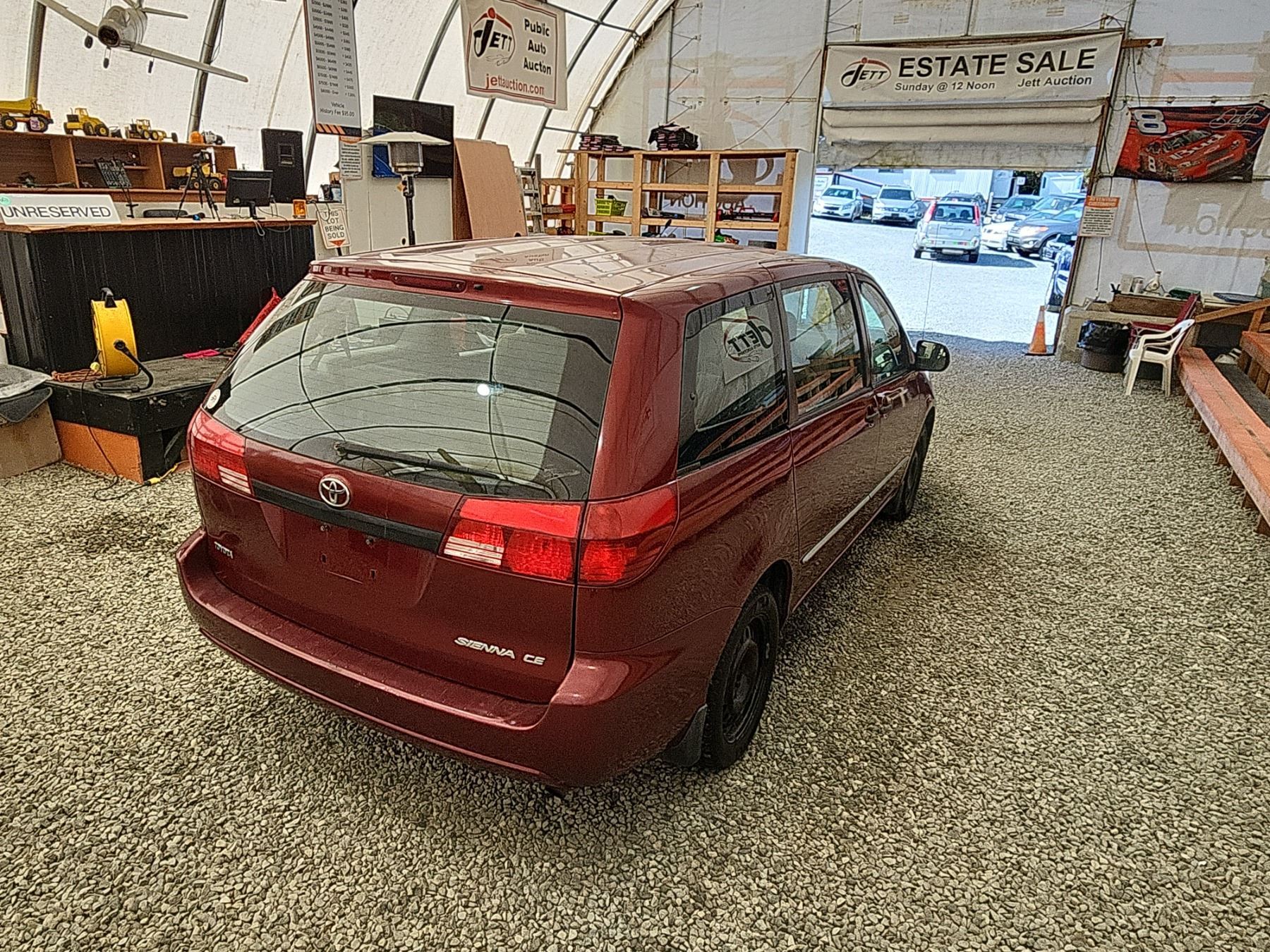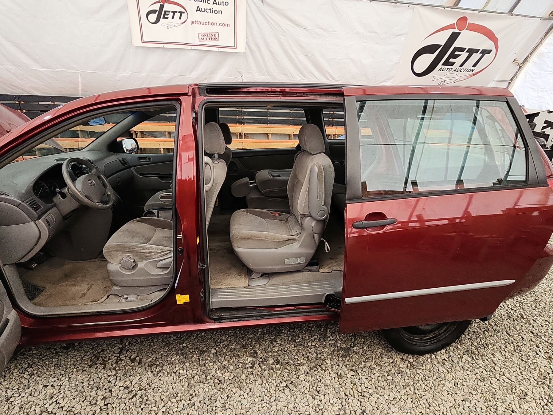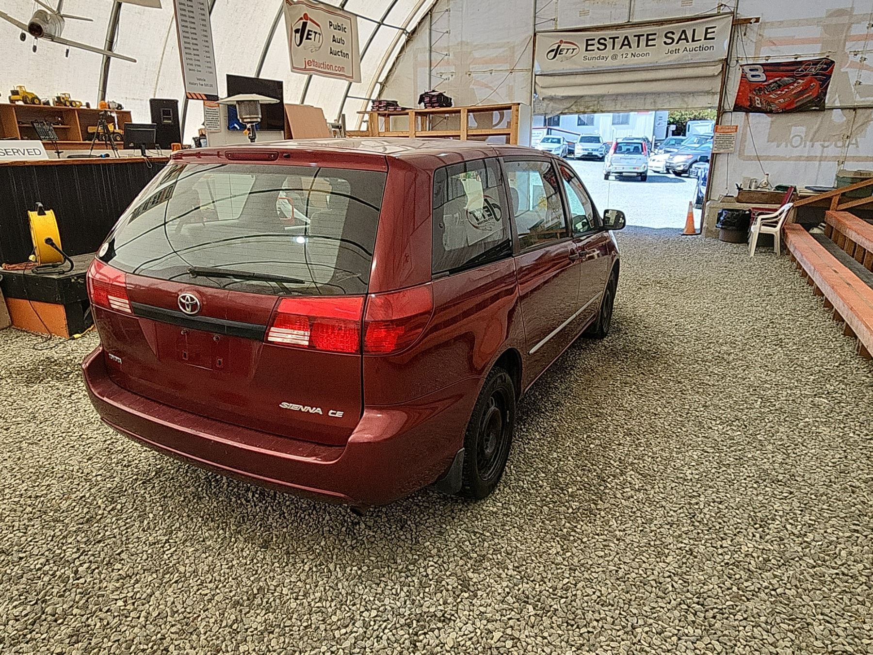 2004 TOYOTA SIENNA, RED, 351230 KMS, 3.3L, 6 CYLINDER, GASOLINE, AUTOMATIC, TRANSMISSION, FRONT WHEEL DRIVE, 7 PASSENGER. AIR CONDITIONING, POWER WINDOWS, POWER LOCKS, KEY-LESS ENTRY, TILT STEERING, ANTI THEFT, DUAL AIR BAGS, CD PLAYER, REAR HEAT AND AIR, POWER MIRRORS, NO REPORTED ACCIDENTS., CHIP OR CRACK IN WINDSHIELD, SPLIT-FOLDING REAR SEATS. DECLARATIONS: EX-LEASE 0 ACCIDENTS 0 GLASS CLAIM, TOTALLING $0. SERVICE HISTORY SHOWS11 RECORDS. AUCTION NOTES: STOCK #: D210462 5TDZA29C14S210462 NOT MECHANICALLY INSPECTED, NOT SUITABLE FOR TRANSPORTATION, MUST TOW.