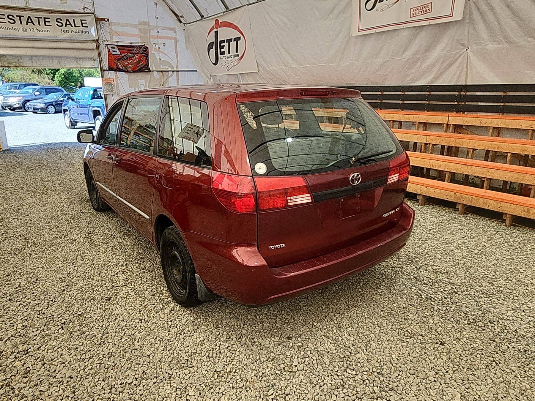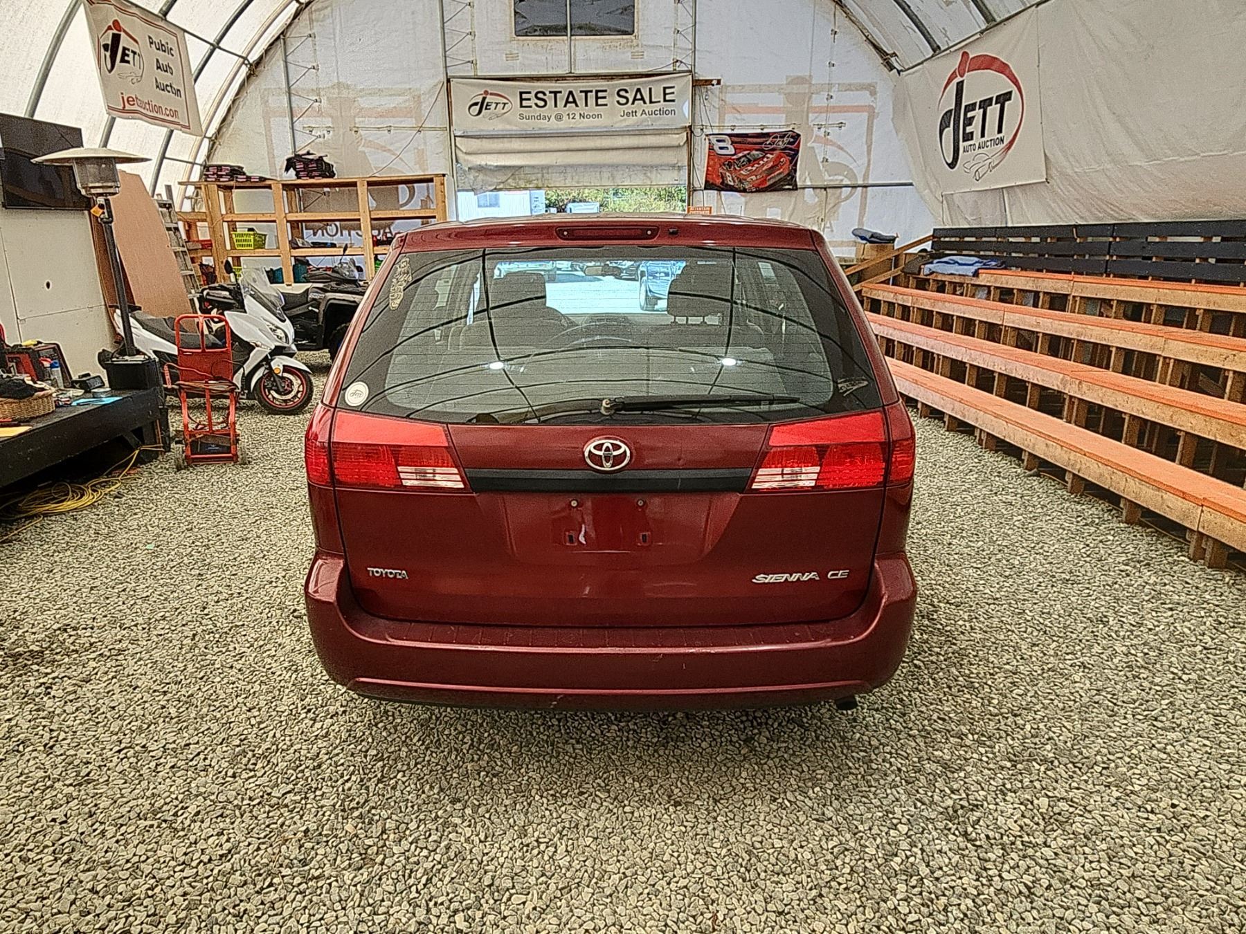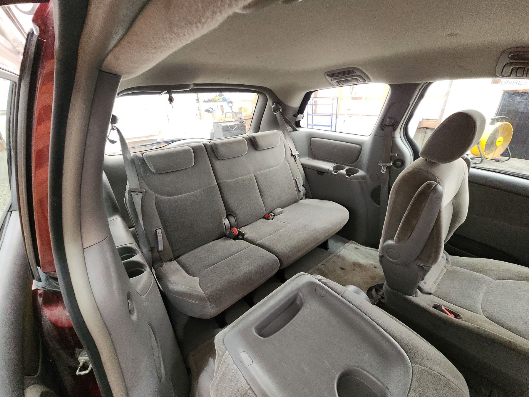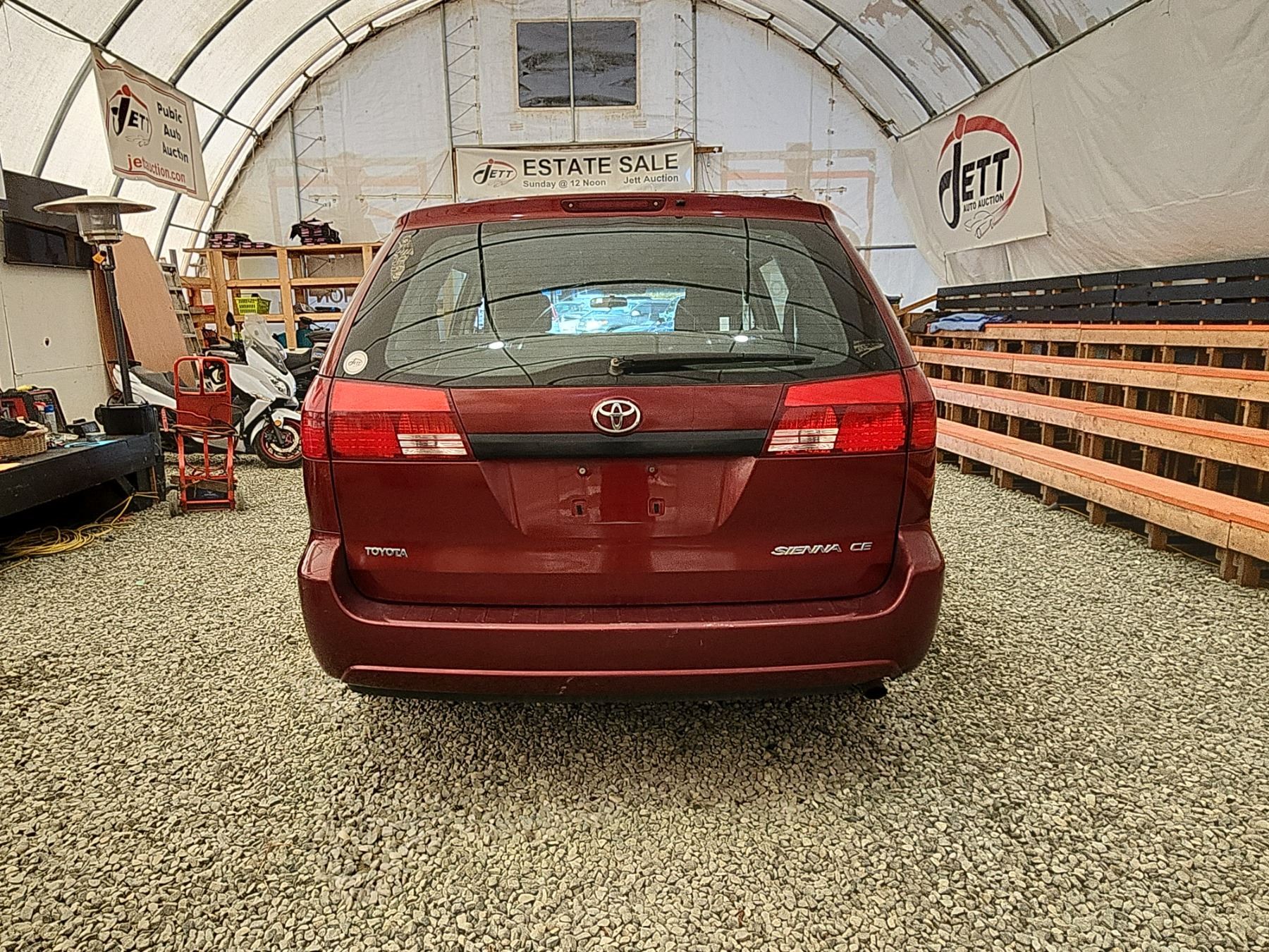 2004 TOYOTA SIENNA, RED, 351230 KMS, 3.3L, 6 CYLINDER, GASOLINE, AUTOMATIC, TRANSMISSION, FRONT WHEEL DRIVE, 7 PASSENGER. AIR CONDITIONING, POWER WINDOWS, POWER LOCKS, KEY-LESS ENTRY, TILT STEERING, ANTI THEFT, DUAL AIR BAGS, CD PLAYER, REAR HEAT AND AIR, POWER MIRRORS, NO REPORTED ACCIDENTS., CHIP OR CRACK IN WINDSHIELD, SPLIT-FOLDING REAR SEATS. DECLARATIONS: EX-LEASE 0 ACCIDENTS 0 GLASS CLAIM, TOTALLING $0. SERVICE HISTORY SHOWS11 RECORDS. AUCTION NOTES: STOCK #: D210462 5TDZA29C14S210462 NOT MECHANICALLY INSPECTED, NOT SUITABLE FOR TRANSPORTATION, MUST TOW.