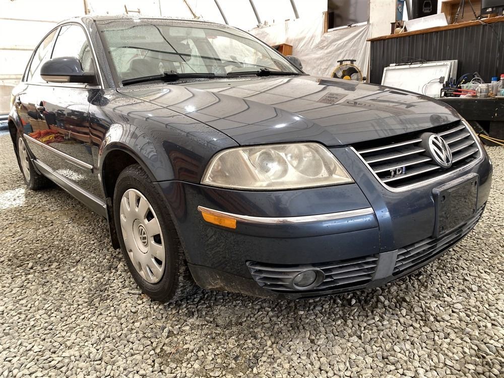 2004 VW PASSAT, BLUE, 301456 KMS, 2.0L, 4 CYLINDER, DIESEL, AUTOMATIC WITH TIPTRONIC, TRANSMISSION, FRONT WHEEL DRIVE, 5 PASSENGER. AIR CONDITIONING, POWER WINDOWS, POWER LOCKS, KEY-LESS ENTRY, TILT STEERING, CRUISE CONTROL, ANTI THEFT, DUAL AIR BAGS, POWER SUNROOF, CD PLAYER, BLUETOOTH, AFTERMARKET STEREO, LEATHER SEATS, HEATED SEATS, TRACTION CONTROL, FOG LIGHTS, POWER MIRRORS, NO REPORTED ACCIDENTS., CHIP OR CRACK IN WINDSHIELD, SPLIT-FOLDING REAR SEATS. DECLARATIONS: NO DESIGNATIONS 0 ACCIDENTS 0 GLASS CLAIM, TOTALLING $0. SERVICE HISTORY SHOWS21 RECORDS. AUCTION NOTES: STOCK #: B324814 WVWPE63BX4P324814 NOT MECHANICALLY INSPECTED, NOT SUITABLE FOR TRANSPORTATION, MUST TOW.