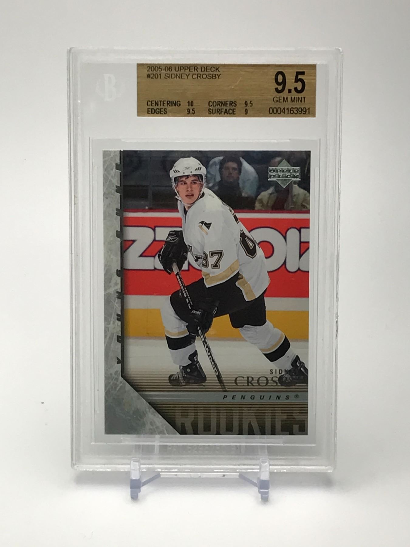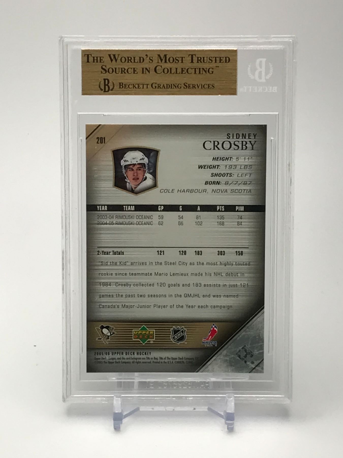 2005-06 UPPER DECK NO.201 SIDNEY CROSBY YOUNG GUNS ROOKIE CARD BECKETT GRADED 9.5