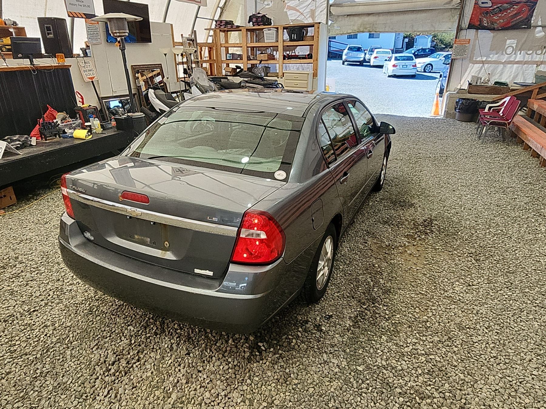2005 CHEVY MALIBU, GREY, 246465 KMS, 3.5L, 6 CYLINDER, GASOLINE, AUTOMATIC, TRANSMISSION, FRONT WHEEL DRIVE, 5 PASSENGER. AIR CONDITIONING, POWER WINDOWS, POWER LOCKS, KEY-LESS ENTRY, TILT STEERING, CRUISE CONTROL, ANTI THEFT, DUAL AIR BAGS, CD PLAYER, TRACTION CONTROL, POWER ADJUSTABLE PEDALS, POWER MIRRORS, CHIP OR CRACK IN WINDSHIELD, SPLIT-FOLDING REAR SEATS. DECLARATIONS: NO DESIGNATIONS 2 ACCIDENTS 0 GLASS CLAIM, TOTALLING $3290. SERVICE HISTORY SHOWS49 RECORDS. AUCTION NOTES: STOCK #: J232828 1G1ZT54855F232828 NOT MECHANICALLY INSPECTED, NOT SUITABLE FOR TRANSPORTATION, MUST TOW.