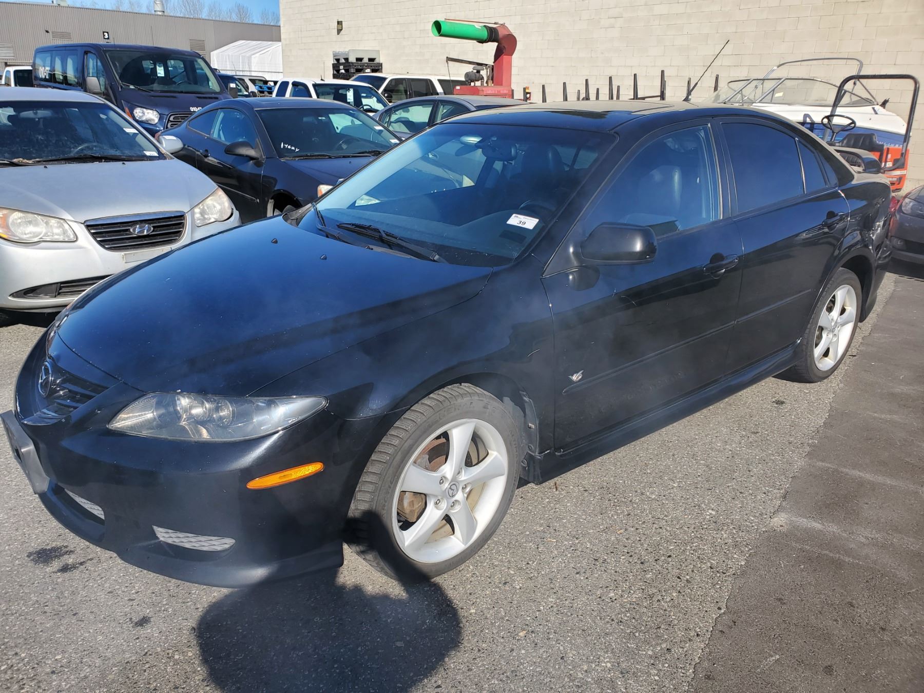 2005 MAZDA 6, 4DR SEDAN, BLACK, VIN # 1YVHP84D655M23552 251,039KMS, GAS, AUTO RD,CD,PW,CC,PS,AW,PL,TW,AC,LT,SR,CR RATTLE NOISE IN FRONT UNDERNEATH 1X ICBC NO DETAILS, ICBC REPAIRED DECS TTL $1,745.78 1X OPEN RECALL PERMANENT PSGR AIRBAG INFLATOR