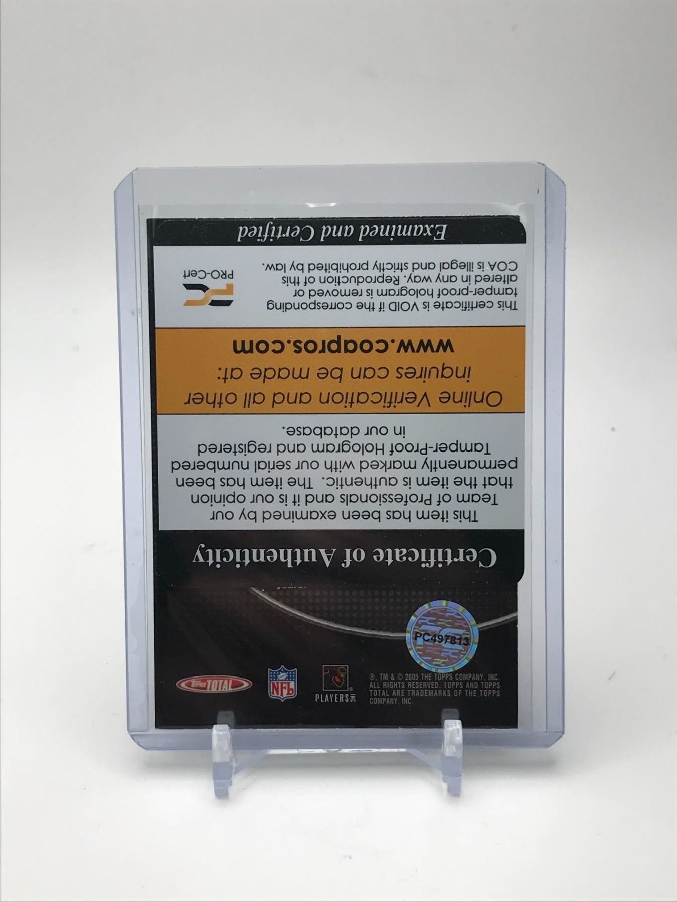 2005 TOPPS TOTAL PEYTON MANNING AUTOGRAPHED FOOTBALL CARD PRO CERT COA