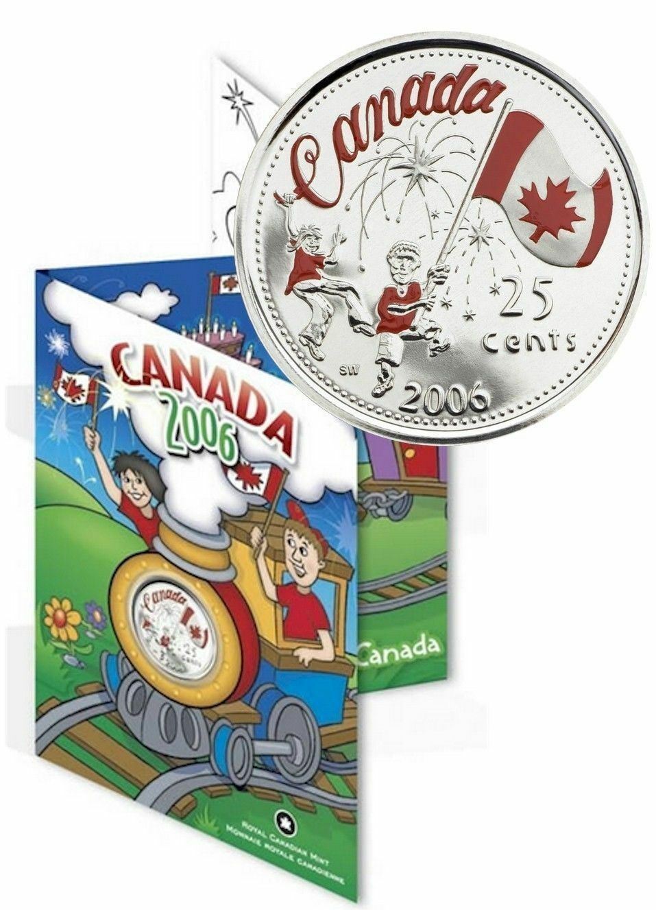 Royal Canadian Mint with Activity Booklet Special issue Colourized 25 cent Coin & a pack of Crayola Crayons