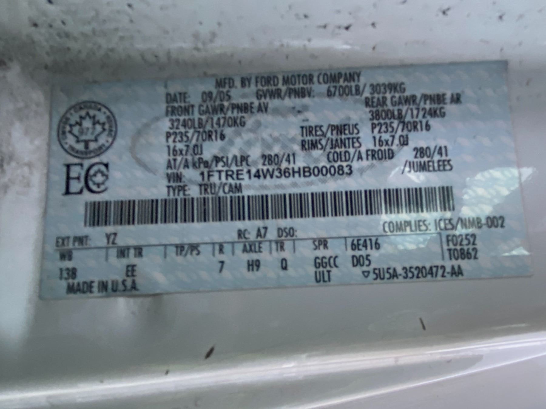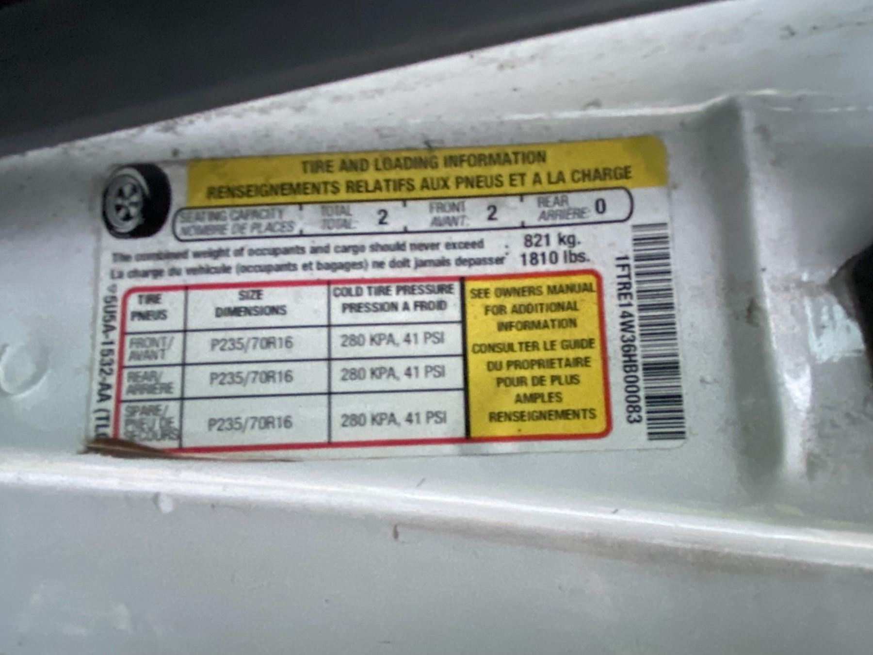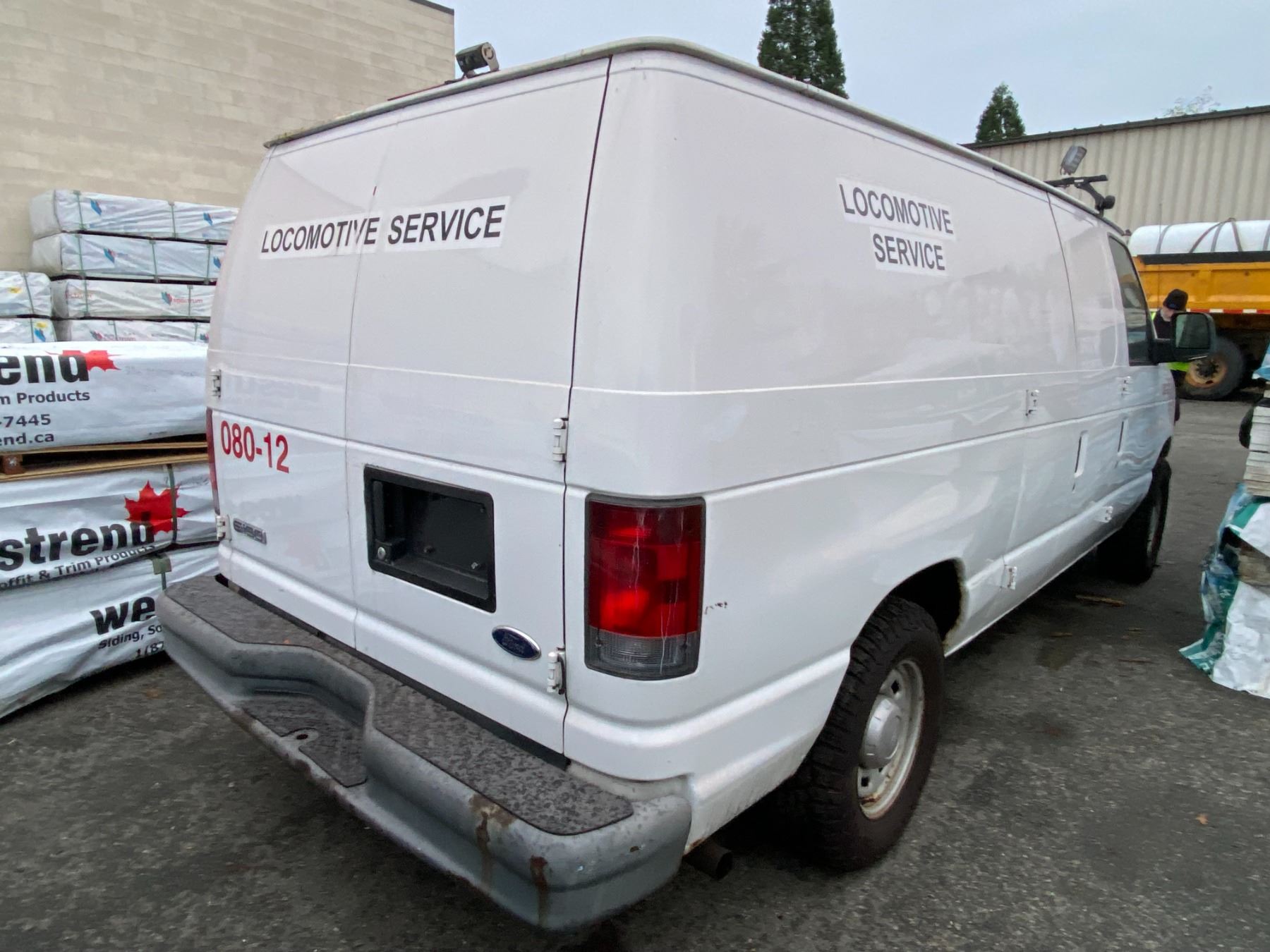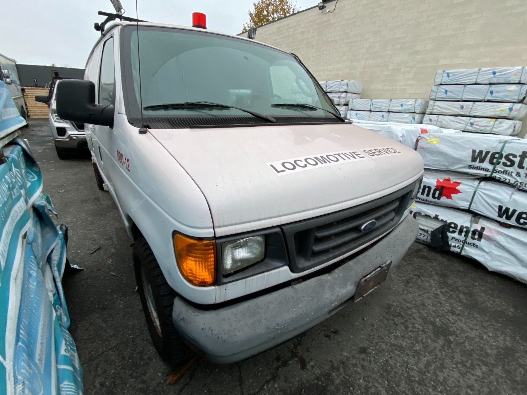 2006 FORD E-150, 2DR CARGO VAN, WHITE, VIN 1FTRE14W36HB00083, 91,131 KMS, GAS (G), 4.6L, AUTOMATIC, HAS REGISTRATION, HAS KEYS, FEATURES: RADIO, NAV BACKUP CAMERA, TILT WHEEL, AIR COND, BACKUP CAMERA, ROOFTOP HALOGEN LIGHTS & SAFETY BEACON, MINOR SCRATCHES AND DENTS, SHELF UNIT, BRAKES NEED SERVICE, MUST TOW, NOT SUITABLE FOR TRANSPORTATION, USED IN THE POTASH INDUSTRY, NO ICBC DECLARATIONS