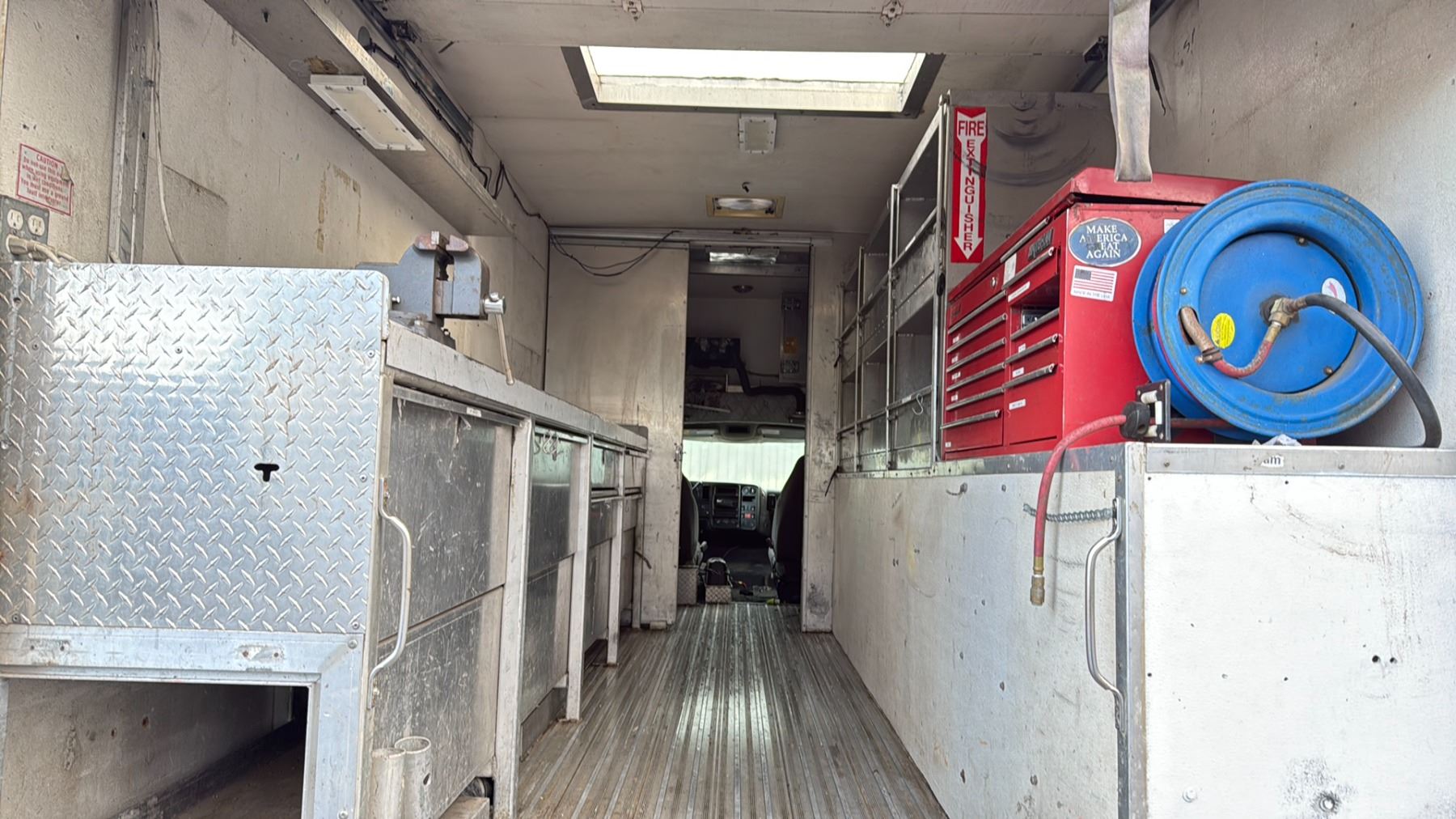 2006 GMC C5500 DURAMAX DIESEL VAN WHITE VIN 1GDG5V1236F425520 91,206 KMS, DIESEL (D), AUTOMATIC, HAS REGISTRATION, HAS KEYS FEATURES: RADIO HISTORY: X-CITY SOME MILDEW ON SEATS/STEERING WHEEL, TOOL BOXES, SHELVING, WORK BENCH, VISE AND AIR HOSE IN BACK, CHECK ENGINE LIGHT ON NO ICBC DECLARATIONS