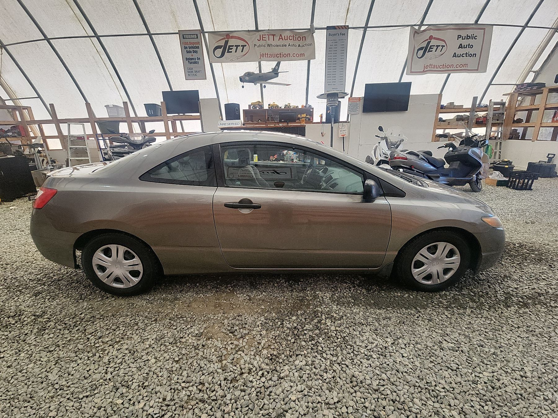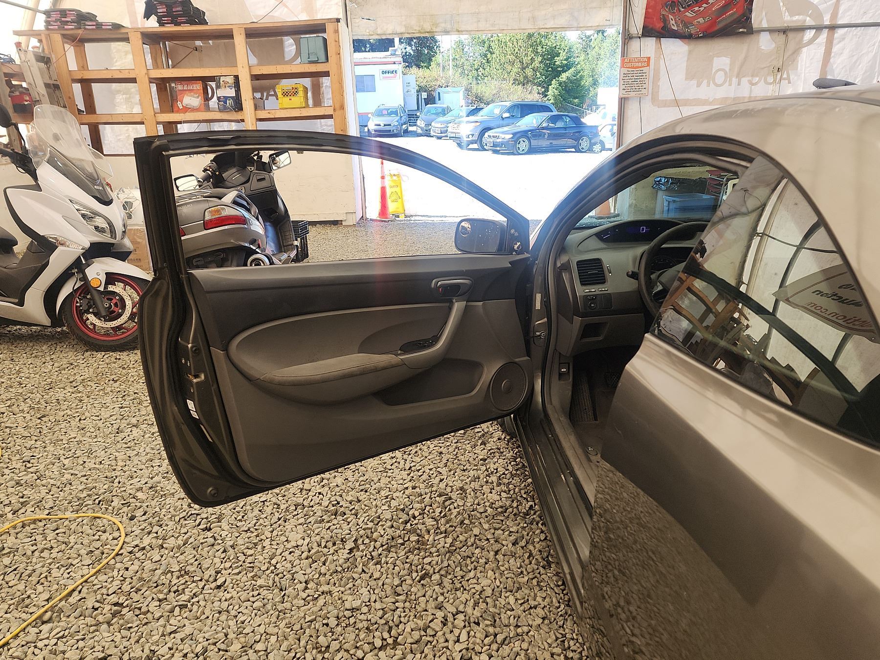 2006 HONDA CIVIC, GOLD, 246970 KMS, 1.8L, 4 CYLINDER, GASOLINE, MANUAL, TRANSMISSION, FRONT WHEEL DRIVE, 5 PASSENGER. AIR CONDITIONING, POWER WINDOWS, POWER LOCKS, KEY-LESS ENTRY, TILT STEERING, ANTI THEFT, DUAL AIR BAGS, POWER MIRRORS, SPLIT-FOLDING REAR SEATS. DECLARATIONS: EX-LEASE, REBUILT STATUS 7 ACCIDENTS 1 GLASS CLAIM, TOTALLING $13183. SERVICE HISTORY SHOWS9 RECORDS. AUCTION NOTES: STOCK #: B011062 2HGFG11366H011062 NOT MECHANICALLY INSPECTED, NOT SUITABLE FOR TRANSPORTATION, MUST TOW.